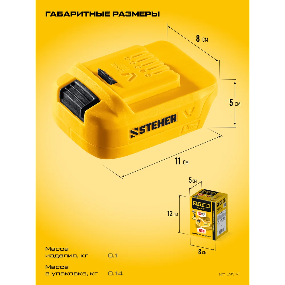 Купить Адаптер для АКБ STEHER LMS под инструмент V1, 20 В,LMS-V1 по лучшей цене с доставкой - интернет магазин №1 в России