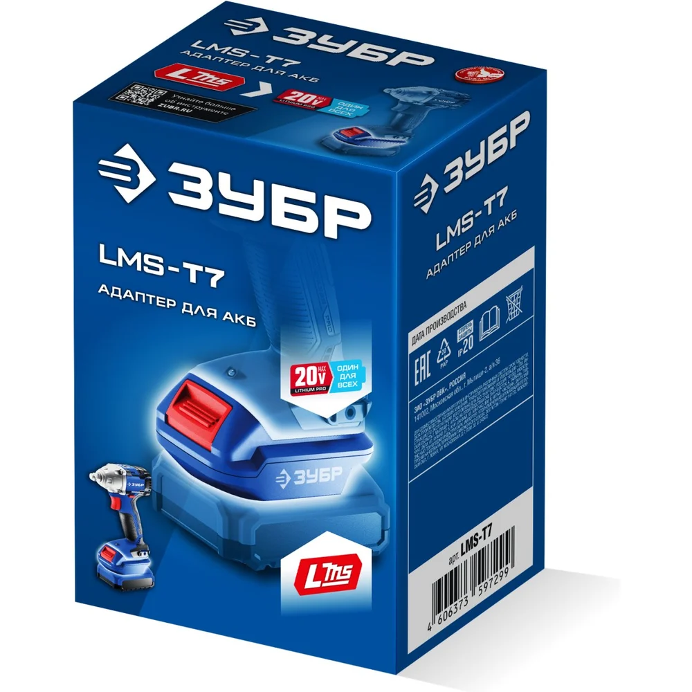 Адаптер для АКБ ЗУБР LMS под инструмент 20V Max Профессионал 20 В, LMS-T7