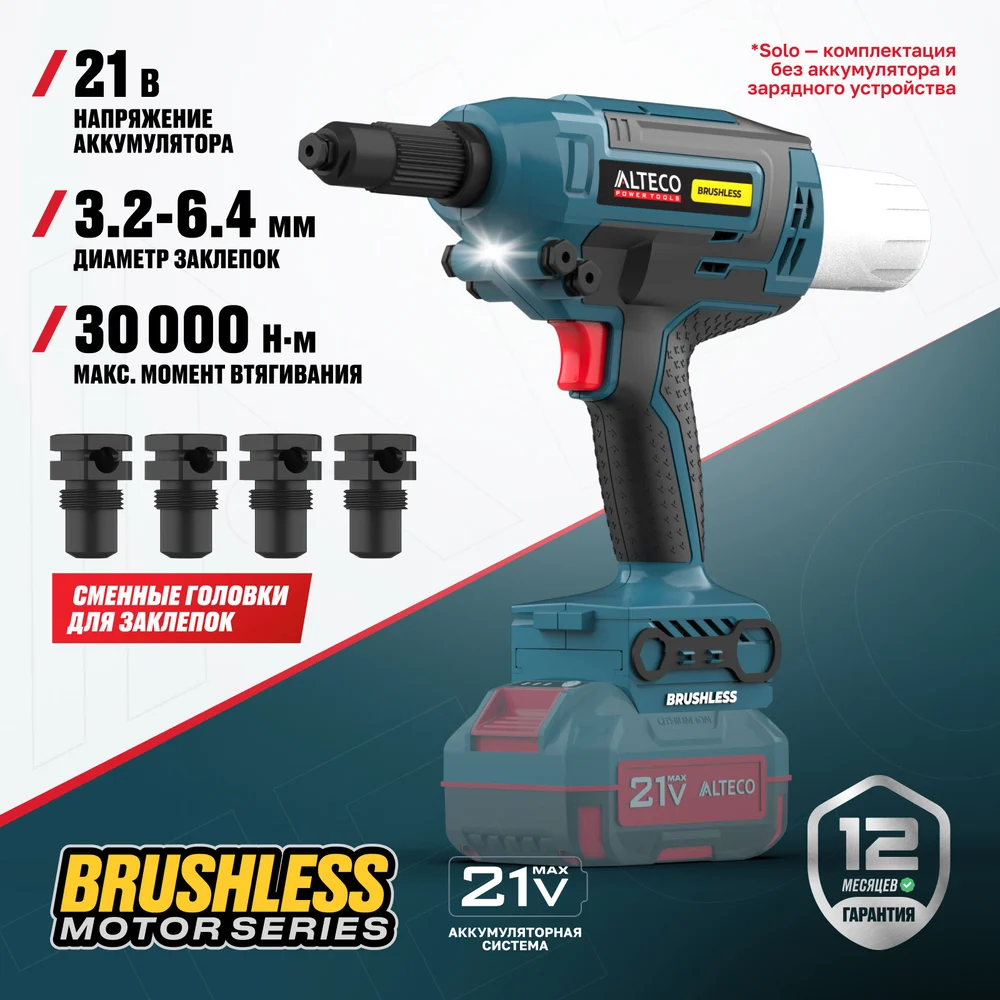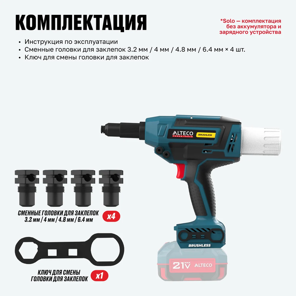 Купить Бесщеточный аккумуляторный заклепочник ALTECO CRG 21-64 BL Solo 86105 по лучшей цене с доставкой - интернет магазин №1 в России