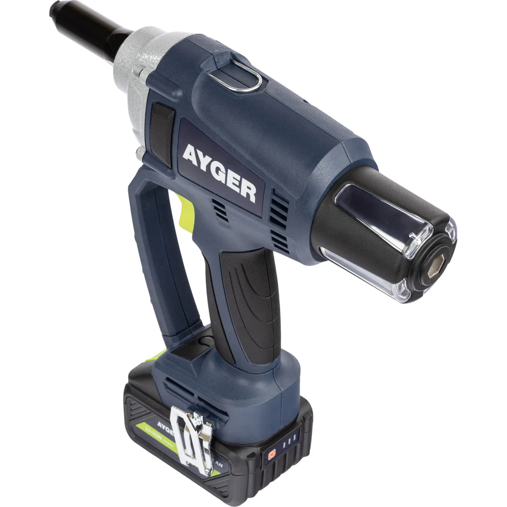 Заклёпочник аккумуляторный AYGER с одним аккумулятором 4Ah AP100