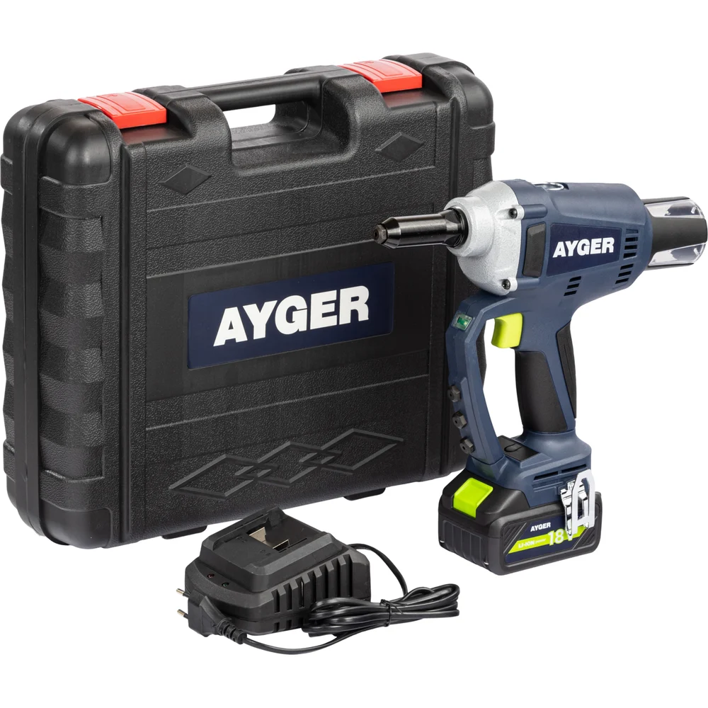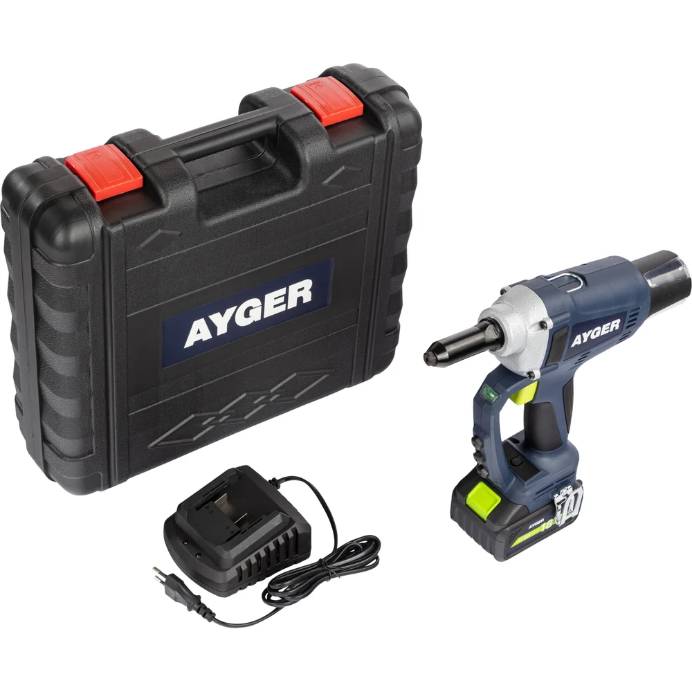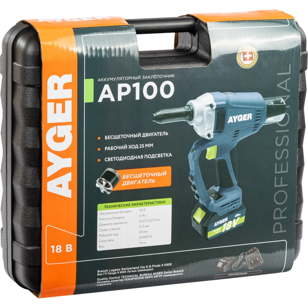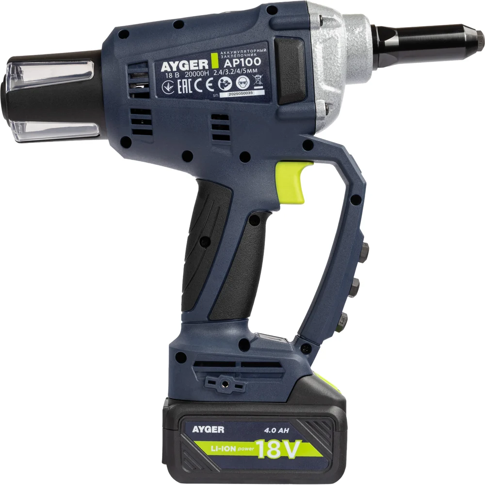 Купить Заклёпочник аккумуляторный AYGER с одним аккумулятором 4Ah AP100 по лучшей цене с доставкой - интернет магазин №1 в России
