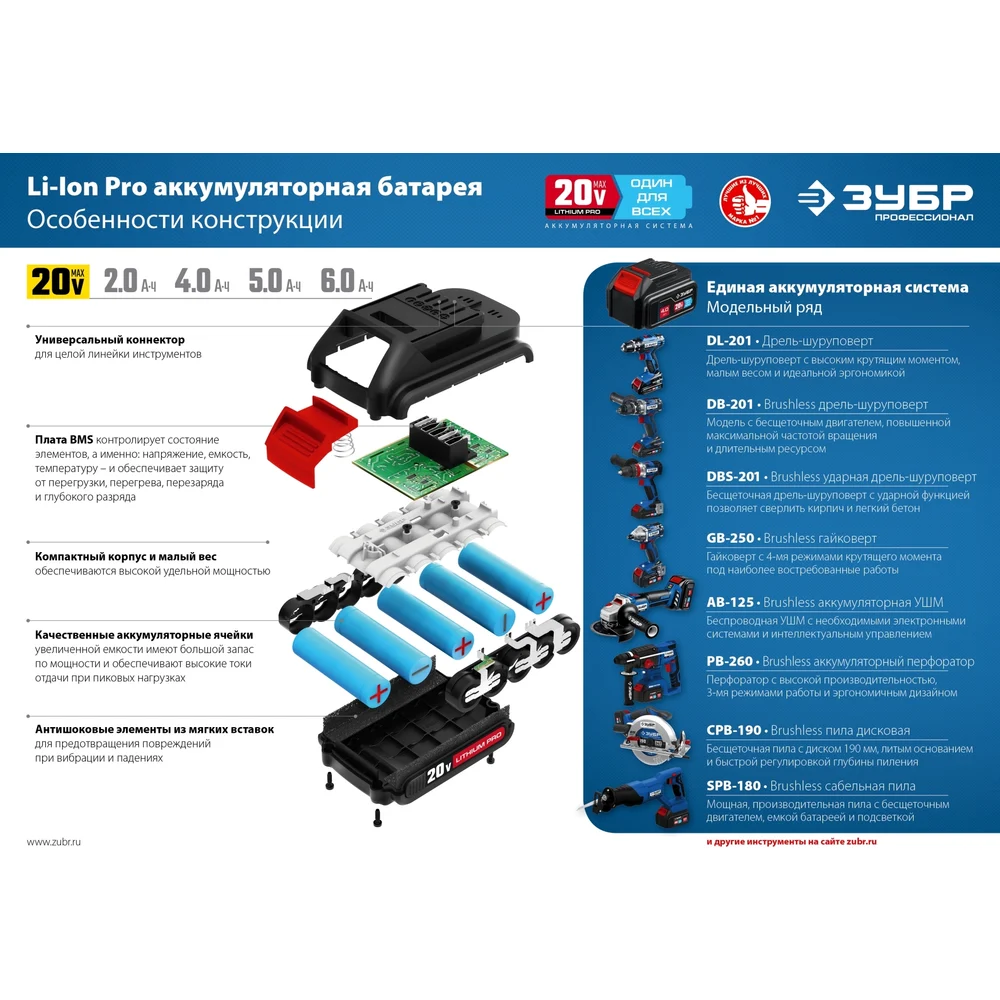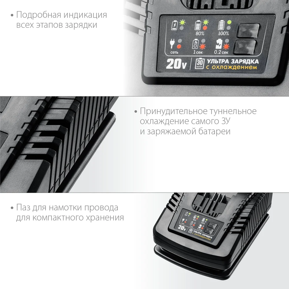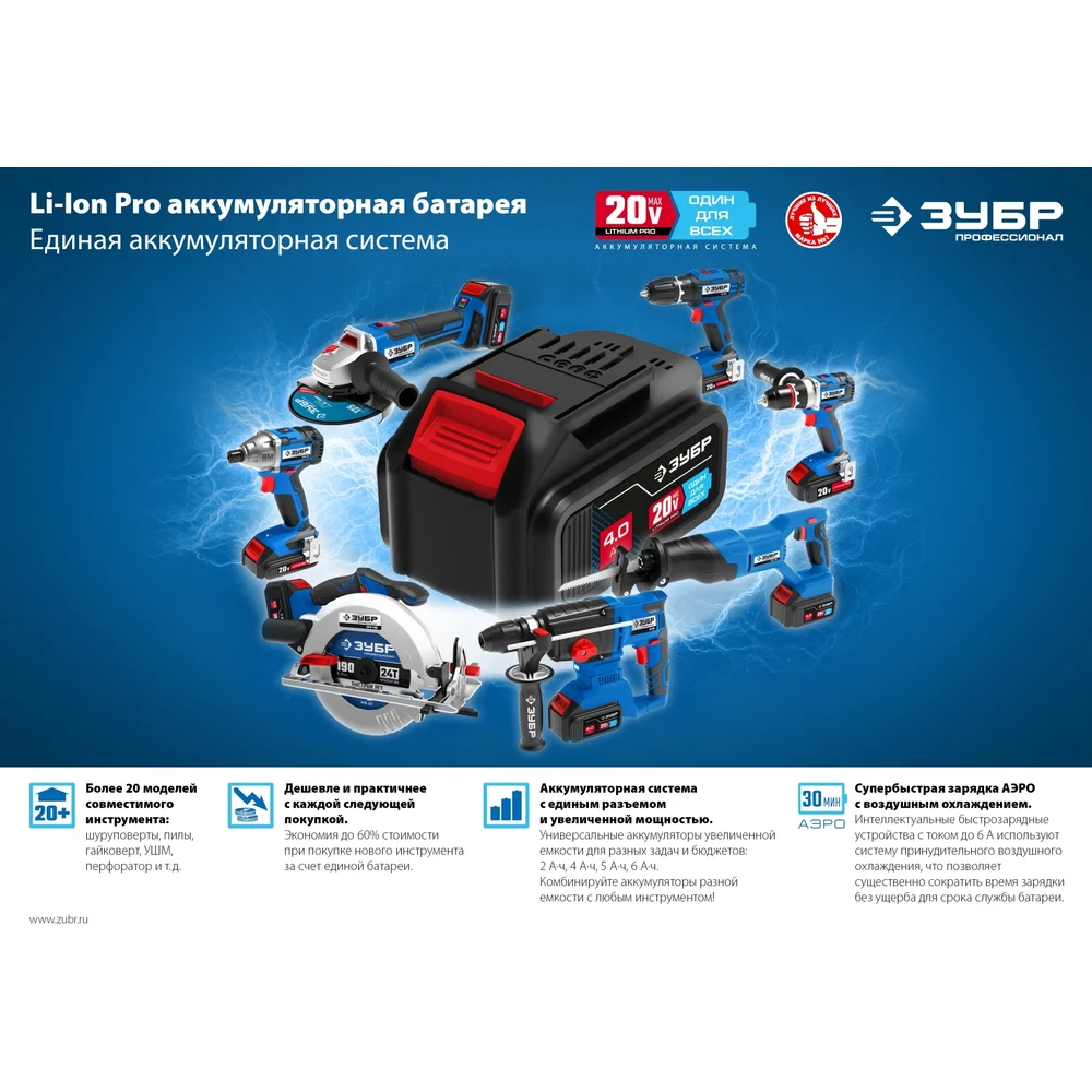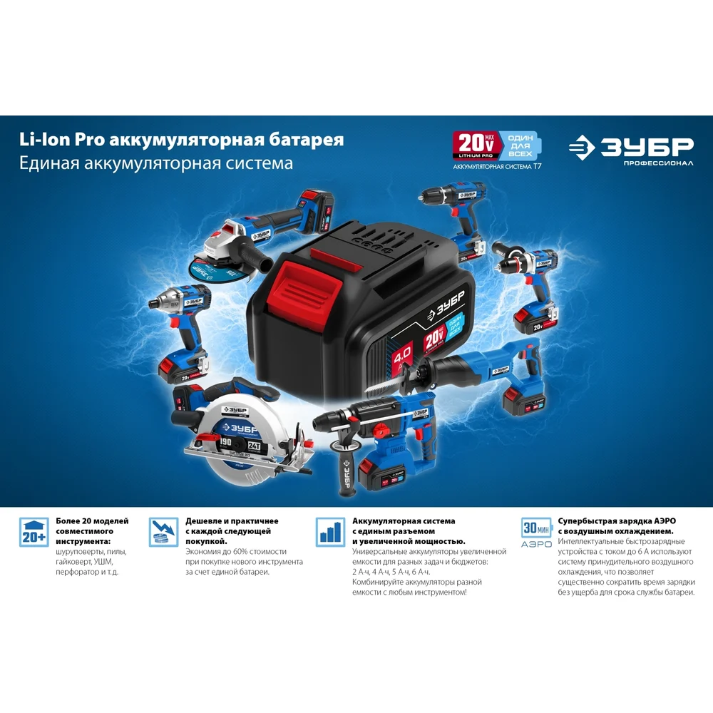 Купить Зарядное устройство для Li-Ion АКБ ЗУБР Профессионал 20В, 6А, тип T7 RT7-20-6 по лучшей цене с доставкой - интернет магазин №1 в России