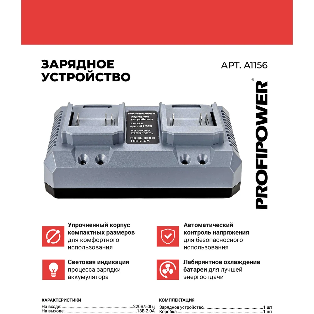 Купить Зарядное устройство Profipower на 2 аккумулятора Li-ion LI-18E A1156 по лучшей цене с доставкой - интернет магазин №1 в России