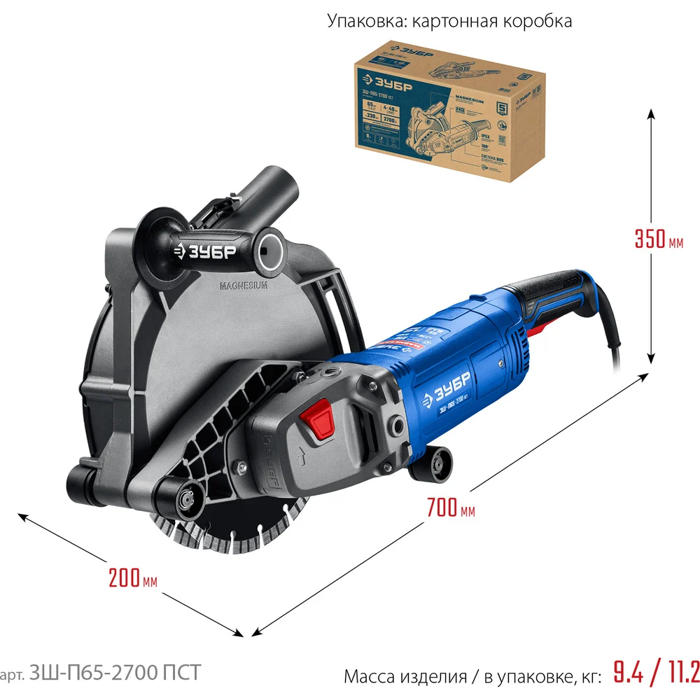 Штроборез (бороздодел) ЗУБР Профессионал d 230 мм, 2700 Вт, 65 мм ЗШ-П65-2700 ПСТ