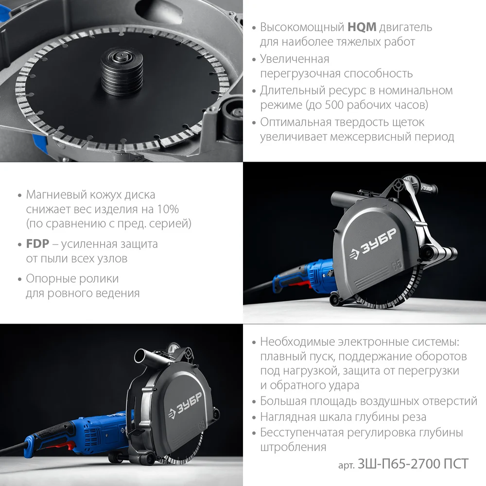 Купить Штроборез (бороздодел) ЗУБР Профессионал d 230 мм, 2700 Вт, 65 мм ЗШ-П65-2700 ПСТ по лучшей цене с доставкой - интернет магазин №1 в России