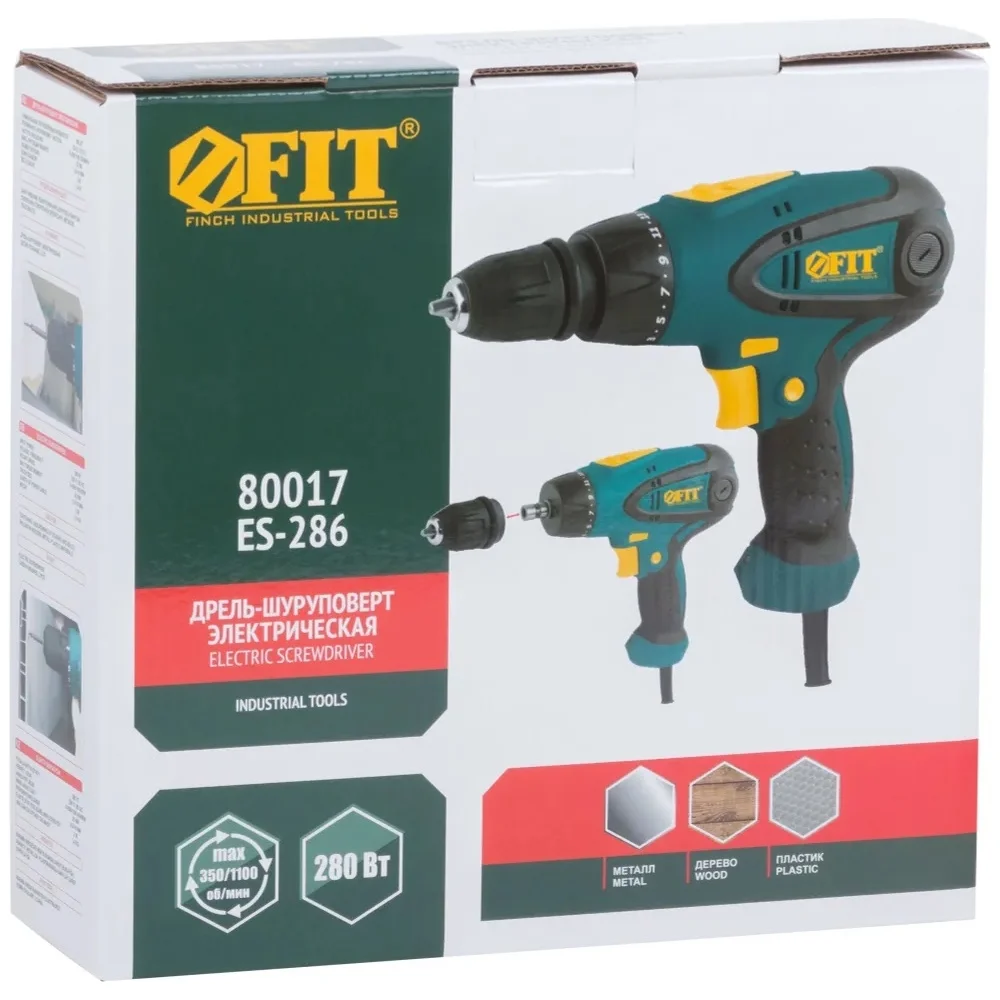Купить Электрическая дрель-шуруповерт FIT 280 Вт, 0-350/1100 об/мин, БзП 10 мм, резиновая накладка, 25 Нм, быстрая смена щеток, коробка 80017 по лучшей цене с доставкой - интернет магазин №1 в России