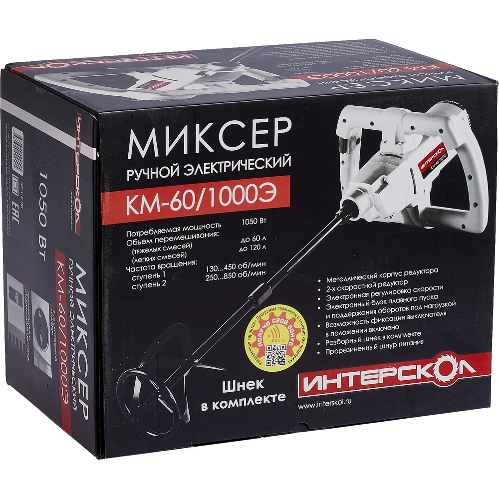 Купить Дрель-миксер Интерскол КМ-60/1000Э 52.1.2.00 по лучшей цене с доставкой - интернет магазин №1 в России