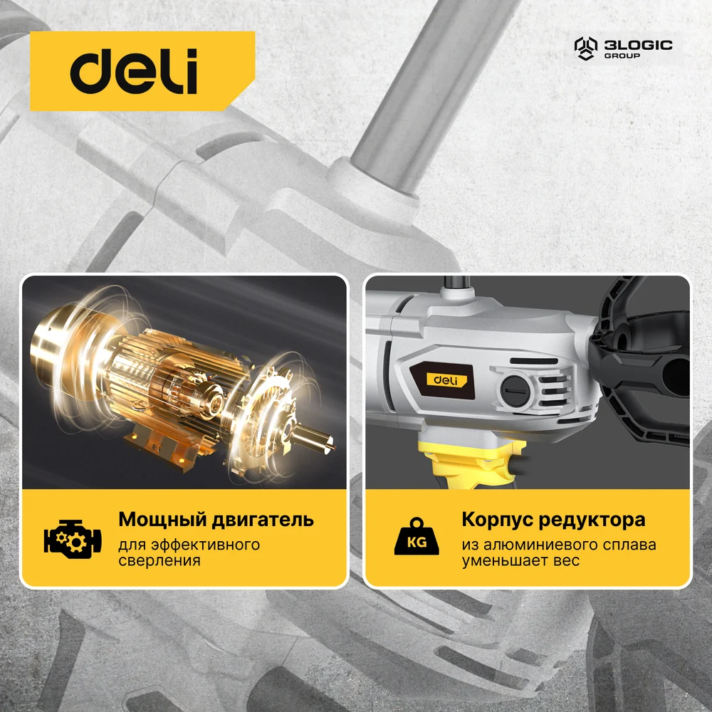 Купить Электрическая дрель-миксер DELI DL-DZ16-E1 1200 Вт, ЗВП 16мм, 1000 об/мин, картон 102960 по лучшей цене с доставкой - интернет магазин №1 в России