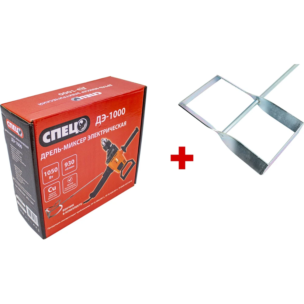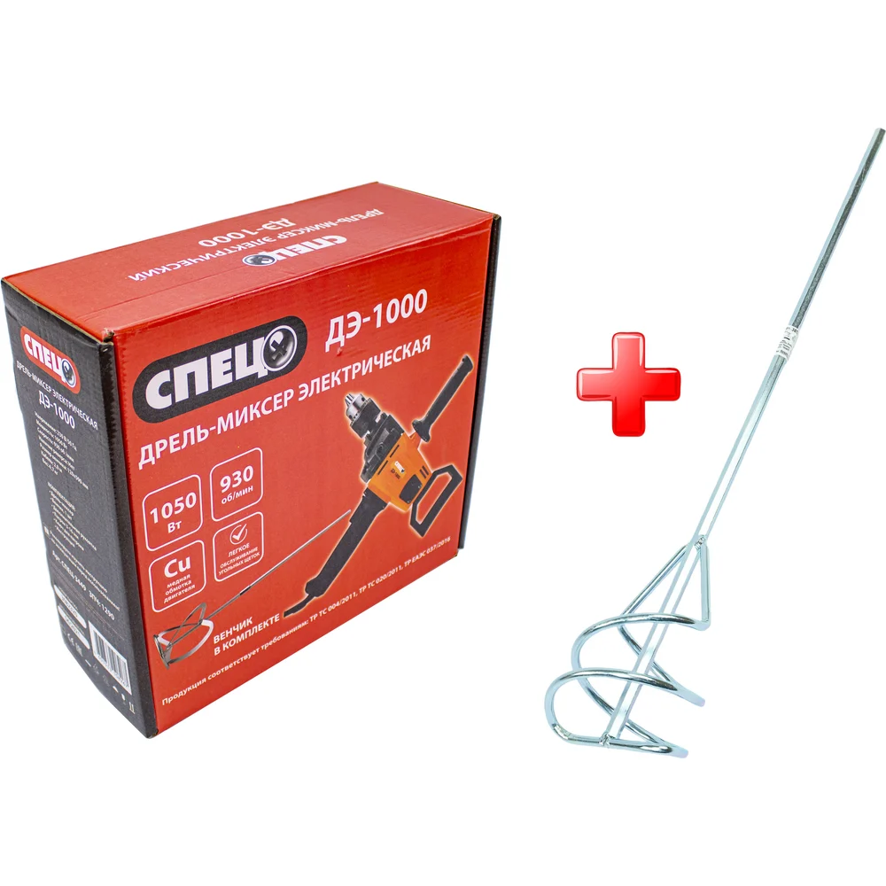 Купить Электрическая дрель миксер СПЕЦ ДЭ-1000 230В/50Гц, 1050 Вт, 930 об/мин, в комплекте сборный венчик, патрон 3-16 мм + Насадка для миксера (венчик) 1 шт д/красок СПЕЦ-3449/3852 по лучшей цене с доставкой - интернет магазин №1 в России