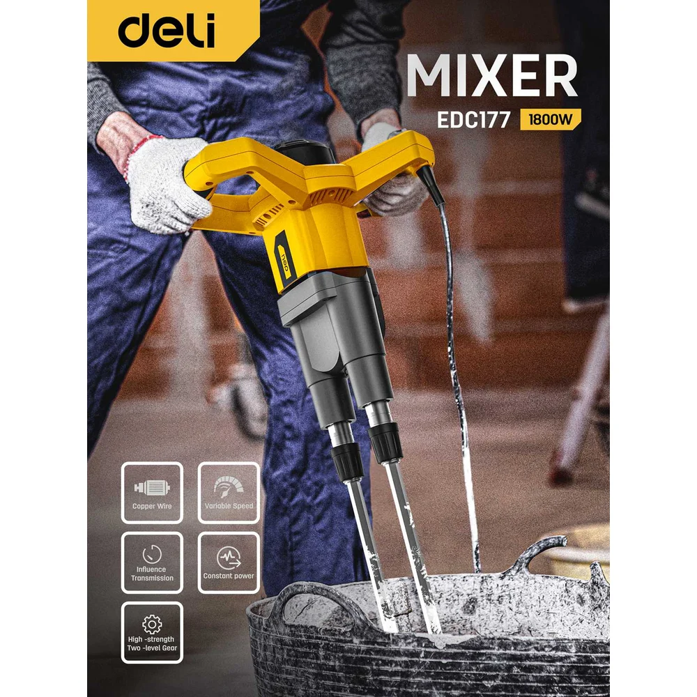 Купить Миксер строительный электрический DELI 1800Вт DC177 (2 передачи, 6 скоростей, 180-480, 250-650 об/мин) 194504 по лучшей цене с доставкой - интернет магазин №1 в России