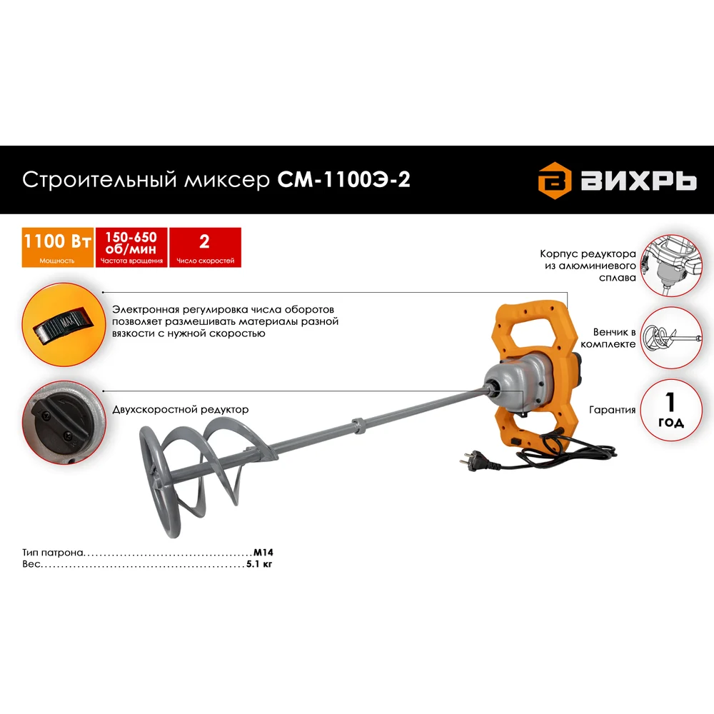 Купить Строительный миксер Вихрь СМ-1100Э-2 72/20/2 по лучшей цене с доставкой - интернет магазин №1 в России