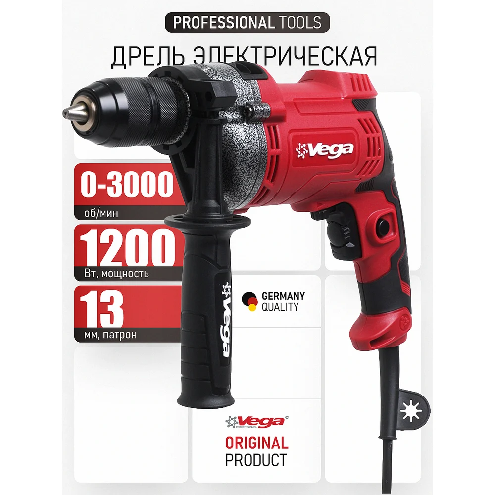 Купить Дрель электрическая Vega 1200 Вт, 0-2800 об/мин VD1200 по лучшей цене с доставкой - интернет магазин №1 в России