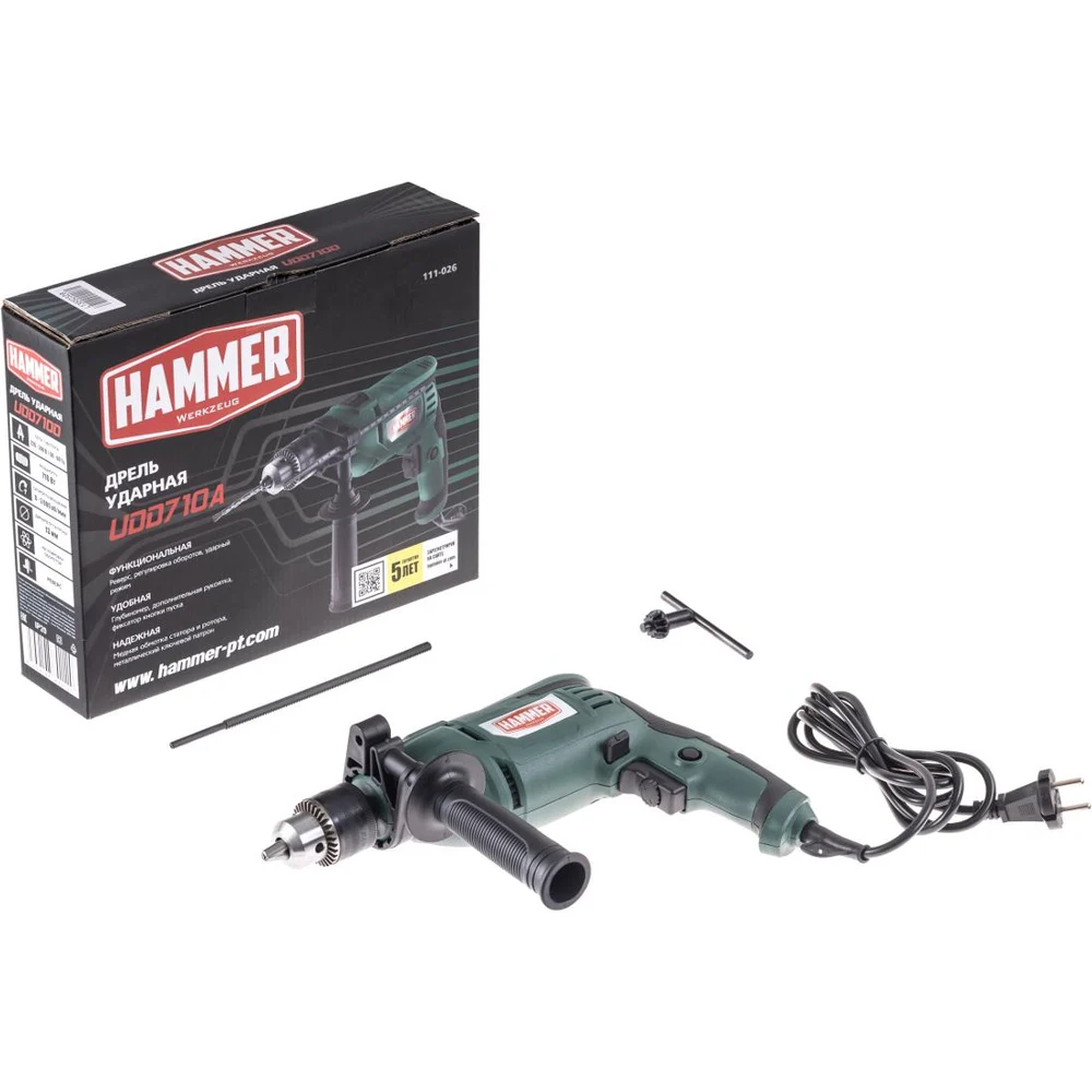 Купить Дрель ударная Hammer UDD710A 710Вт 13мм 0-3000об/мин реверс 828332 по лучшей цене с доставкой - интернет магазин №1 в России