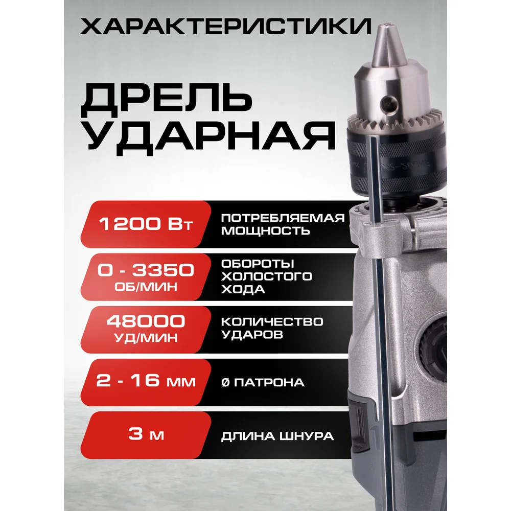Купить Дрель ударная Ставр 1200Вт, 13мм, Stavr SID 1200-16M-2 9030100476 по лучшей цене с доставкой - интернет магазин №1 в России