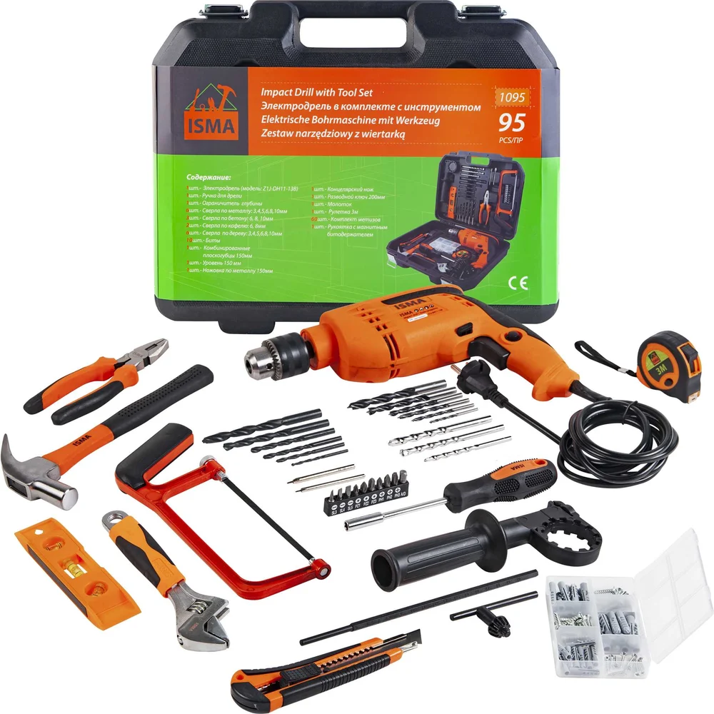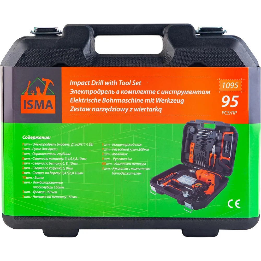 Купить Набор инструментов с электрической дрелью ISMA 95 предметов (220v,750w,0-2900об/мин),в кейсе ISMA-1095(51106) по лучшей цене с доставкой - интернет магазин №1 в России