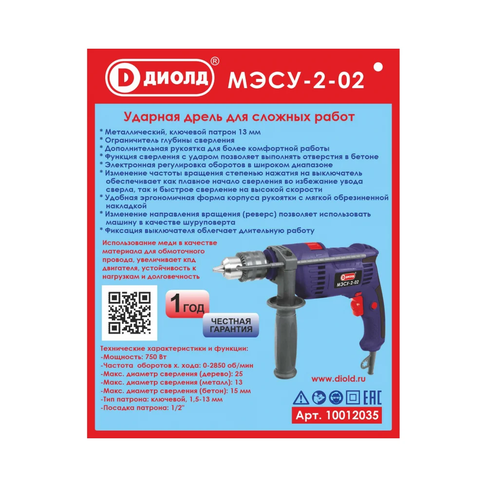 Купить Ручная электрическая сверлильная ударно-вращательная машина ДИОЛД 2-02 10012035 по лучшей цене с доставкой - интернет магазин №1 в России