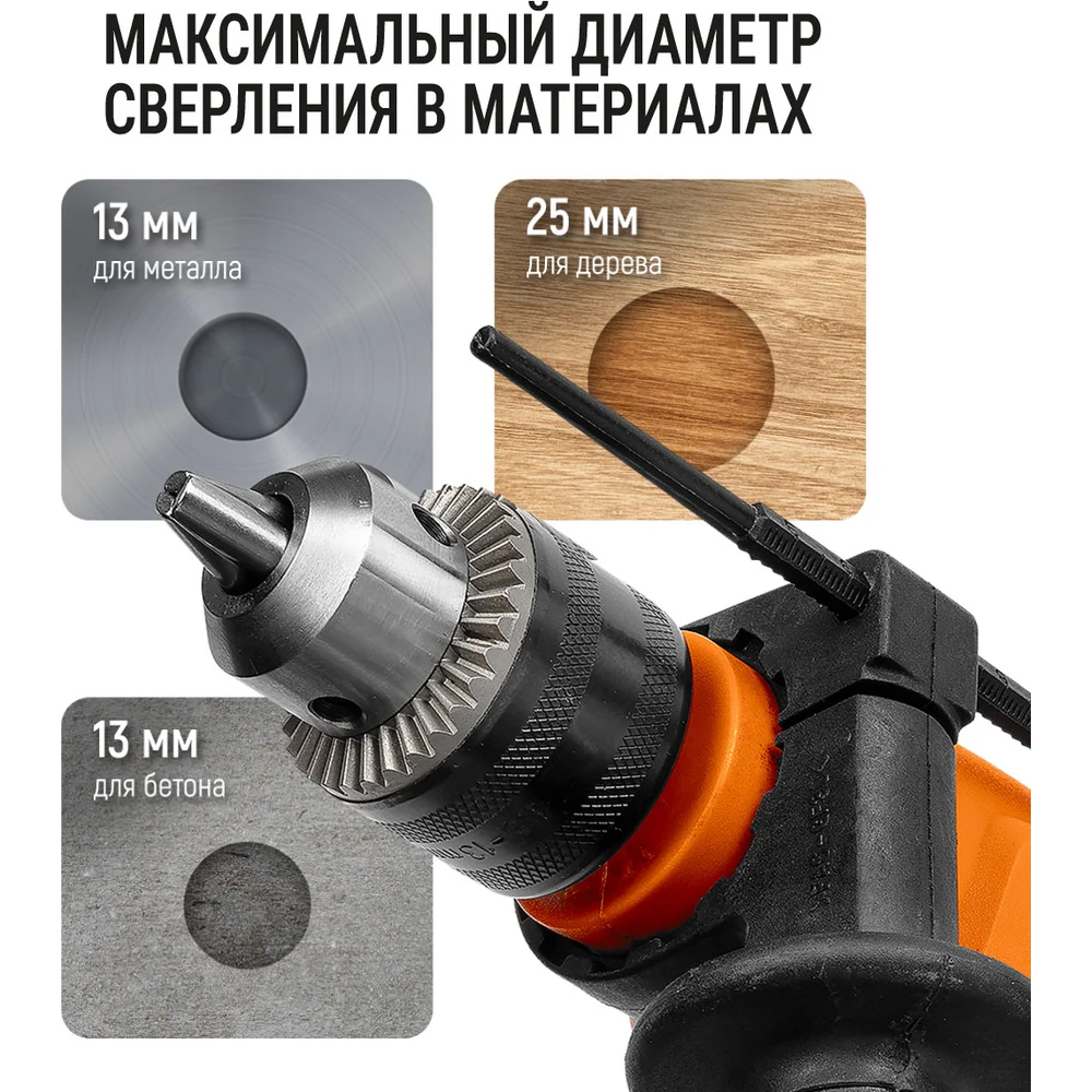 Мах диаметр сверления (бетон) 13