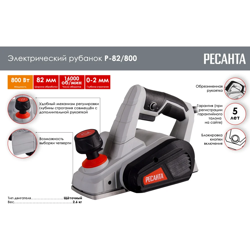 Купить Электрический рубанок Ресанта Р-82/800 75/5/1 по лучшей цене с доставкой - интернет магазин №1 в России