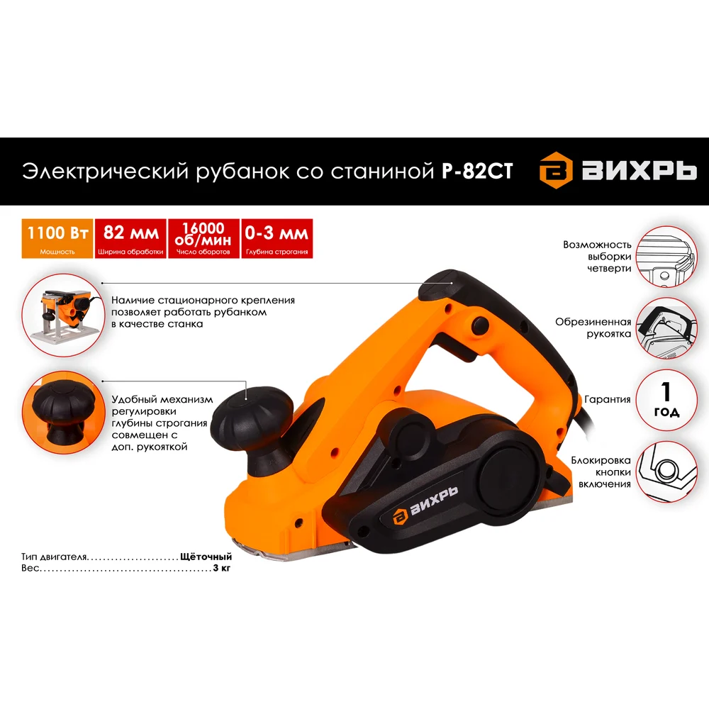 Купить Электрический рубанок со станиной Вихрь Р-82СТ 72/5/3 по лучшей цене с доставкой - интернет магазин №1 в России