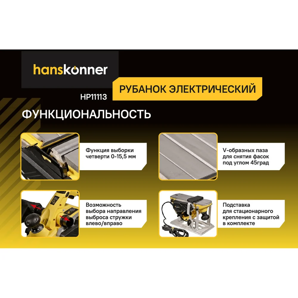 Купить Рубанок Hanskonner 1300Вт 110мм HP11113 по лучшей цене с доставкой - интернет магазин №1 в России