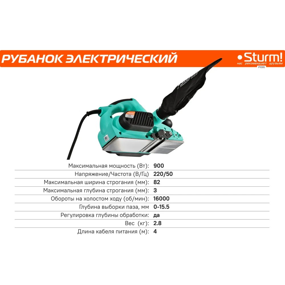 Купить Рубанок Sturm! 900Вт P1095 по лучшей цене с доставкой - интернет магазин №1 в России