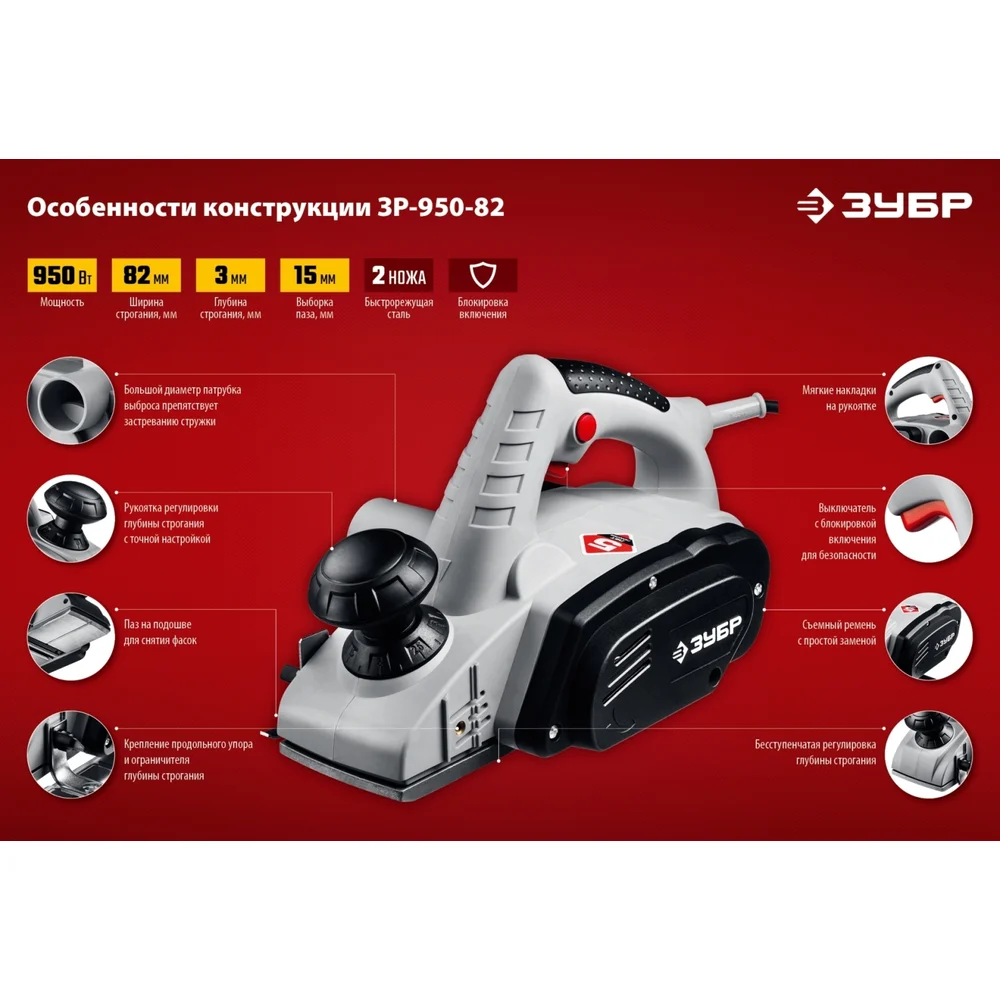 Купить Рубанок ЗУБР ЗР-950-82 по лучшей цене с доставкой - интернет магазин №1 в России