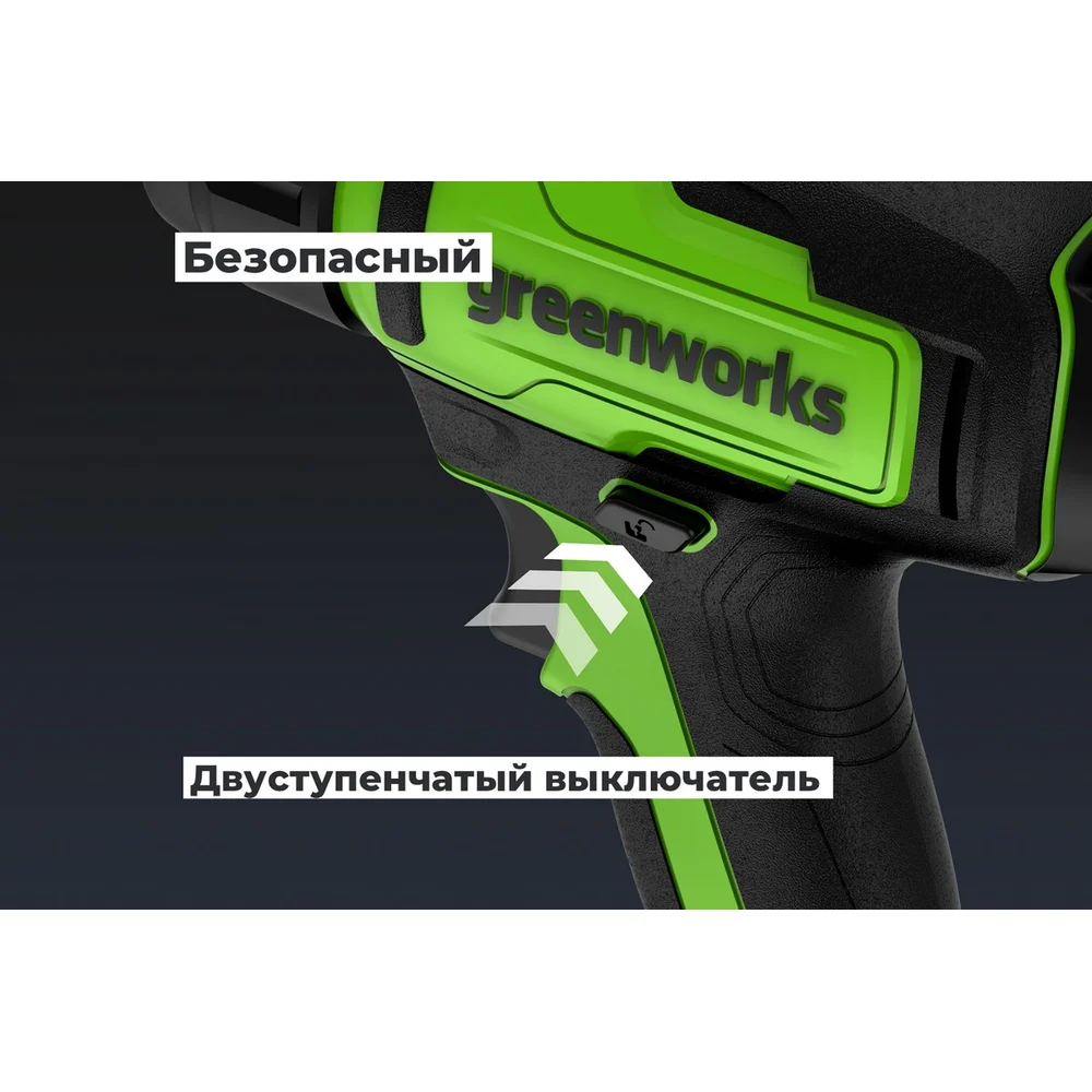 Строительный фен GreenWorks G24HG, 24V, 550С, 200 л/мин, 1x4Ач, ЗУ, коробка 3400207VUB