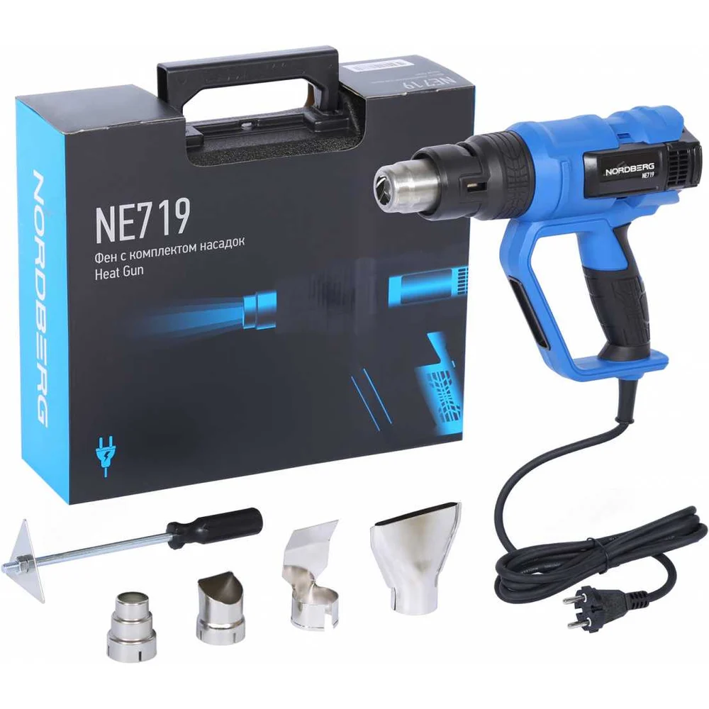 Купить Фен NORDBERG 4 насадки, в кейсе, 50-600 С, 2000 Вт NE719 по лучшей цене с доставкой - интернет магазин №1 в России