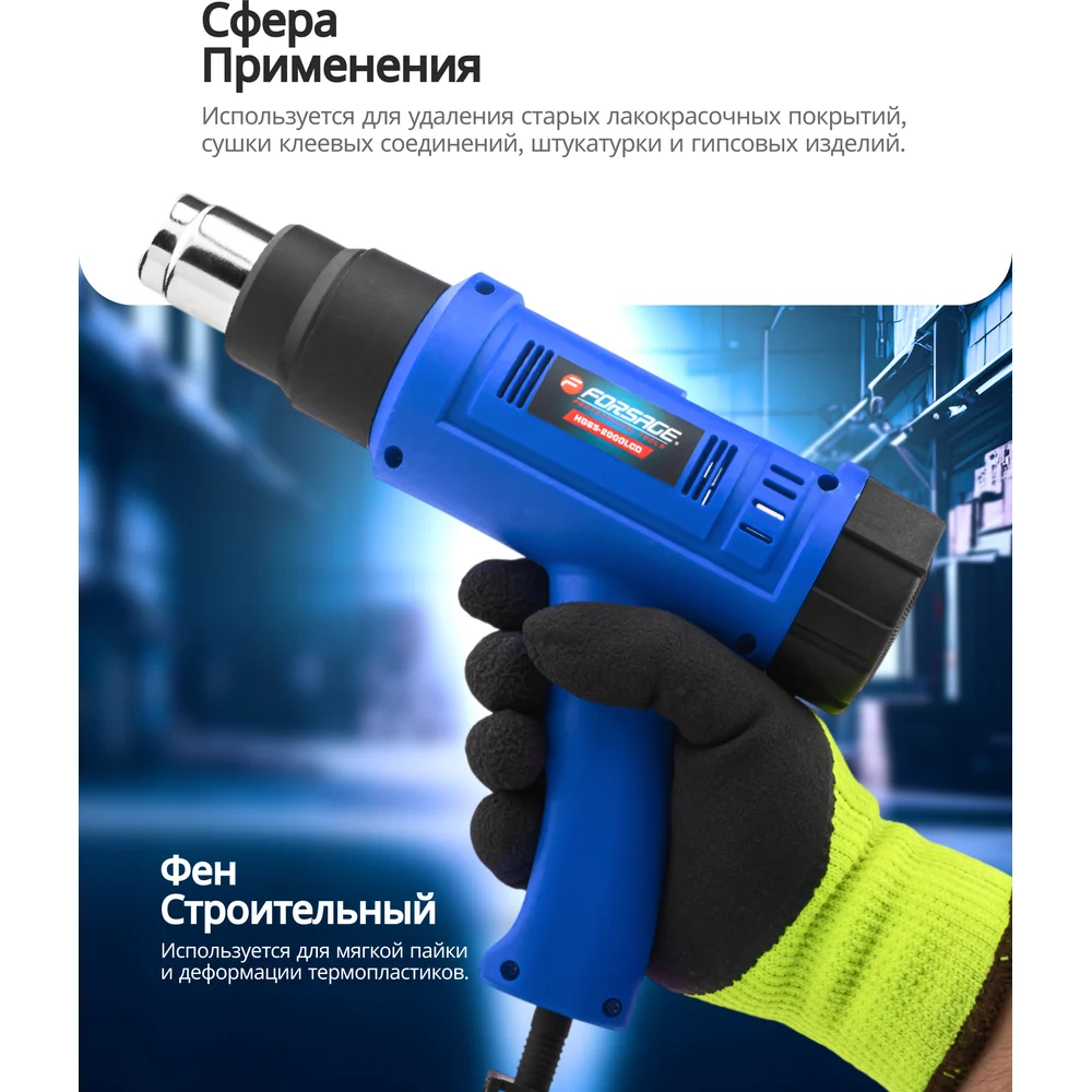 Купить Фен промышленный электрический с насадками Forsage 2000 Вт F-HG65-2000LCD(65566) по лучшей цене с доставкой - интернет магазин №1 в России