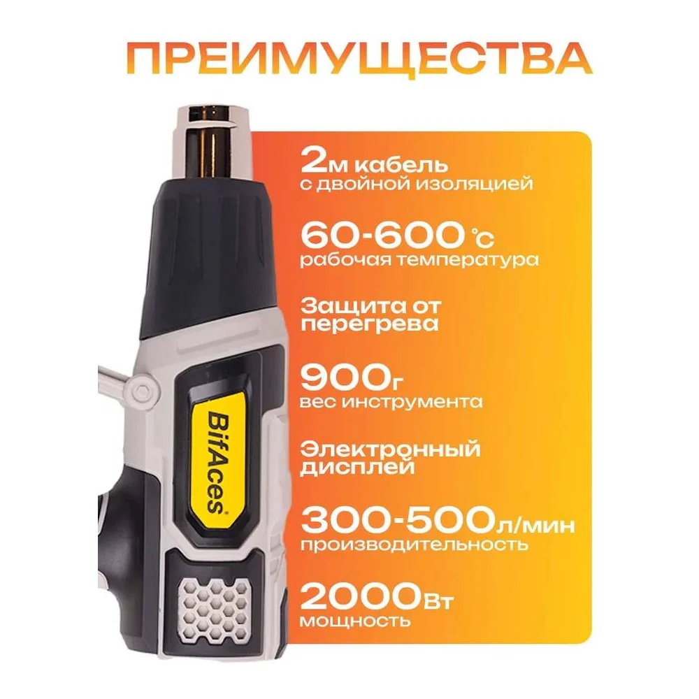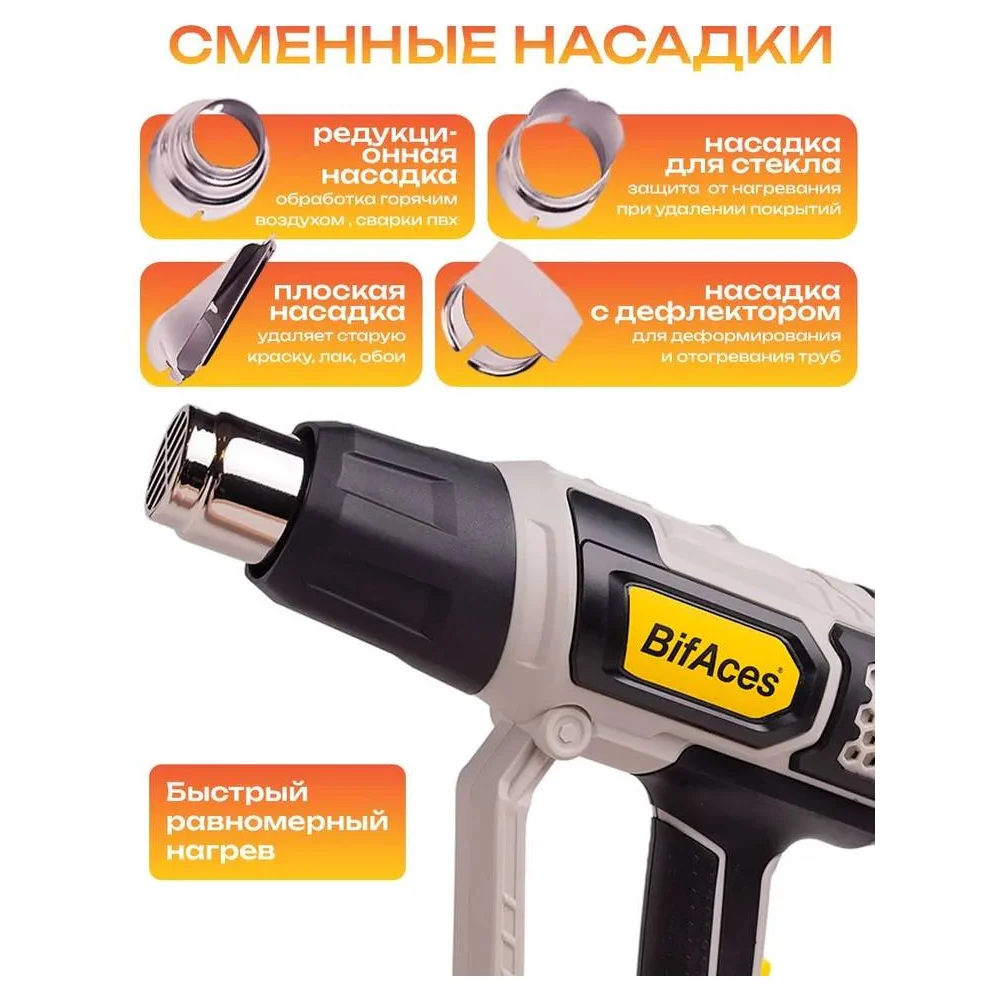 Купить Фен строительный BifAces AHG-2000-D по лучшей цене с доставкой - интернет магазин №1 в России