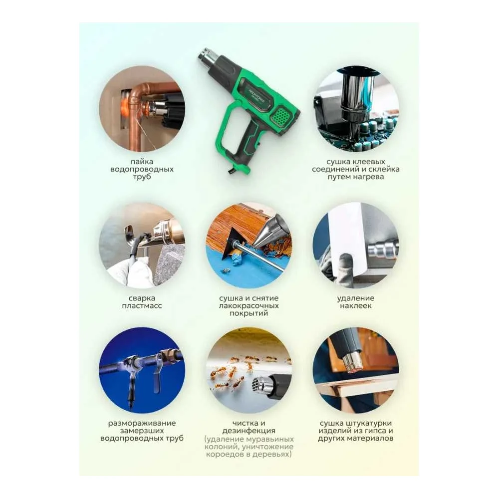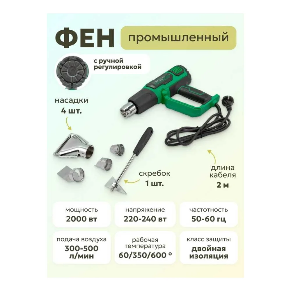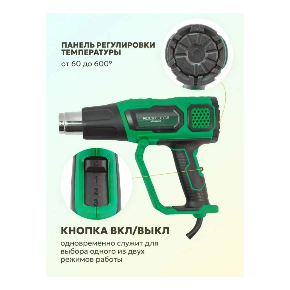 Купить Промышленный фен с насадками Rockforce RF-HG70-2000LED(52352) по лучшей цене с доставкой - интернет магазин №1 в России