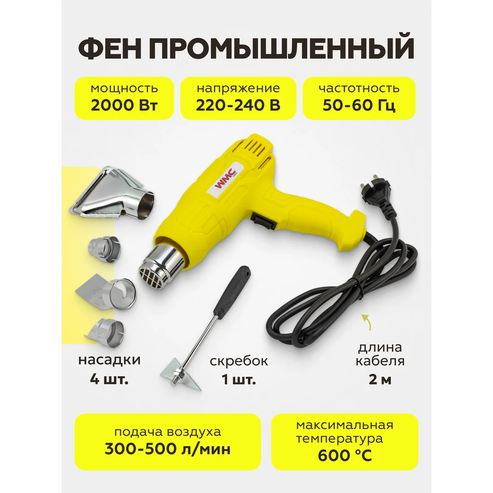 Купить Промышленный фен WMC TOOLS с насадками WMC-DH-HG001(52354) по лучшей цене с доставкой - интернет магазин №1 в России