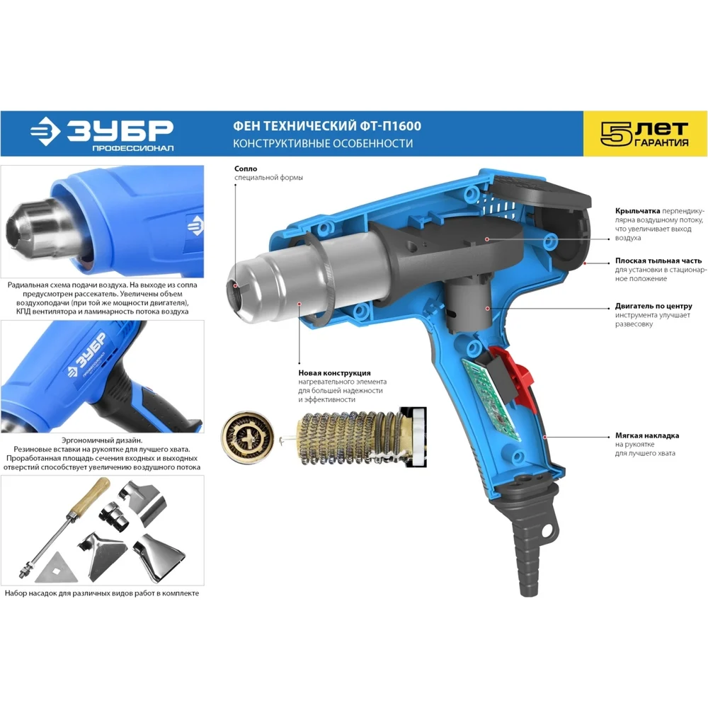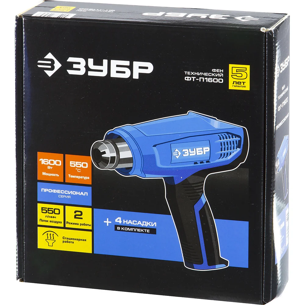 Купить Технический фен 1600 Вт ЗУБР Профессионал ФТ-П1600 по лучшей цене с доставкой - интернет магазин №1 в России