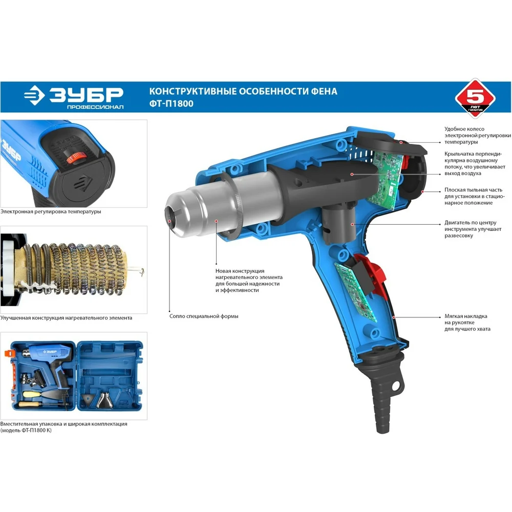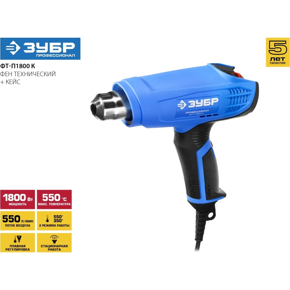 Купить Технический фен 1800 Вт ЗУБР Профессионал ФТ-П1800 К по лучшей цене с доставкой - интернет магазин №1 в России