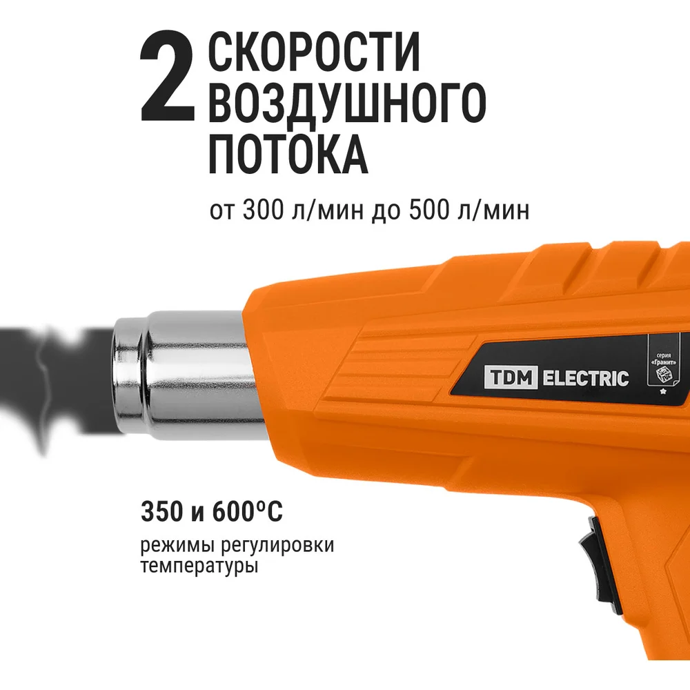 Купить Технический фен TDM ELECTRIC (технический) ТФ-03, 2000 Вт, 2 режима регулировки температуры, 350/600 °C, 300/500 л/мин, "Гранит" SQ1029-0103 по лучшей цене с доставкой - интернет магазин №1 в России