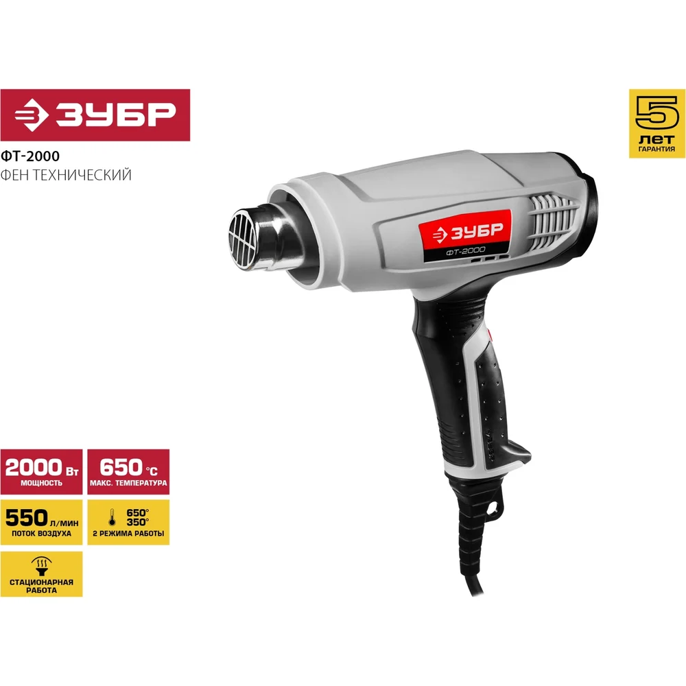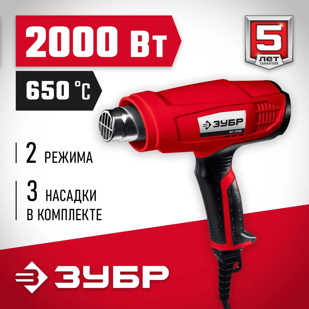 Купить Технический фен ЗУБР 2000 Вт ФТ-2000 по лучшей цене с доставкой - интернет магазин №1 в России