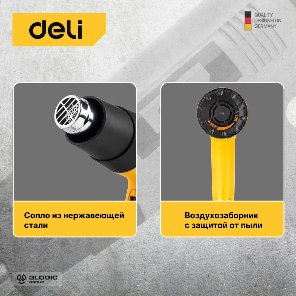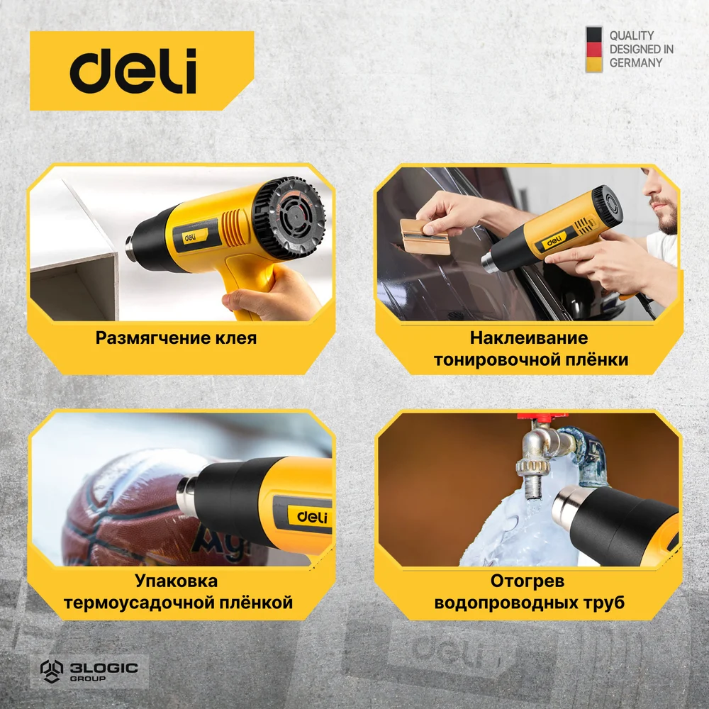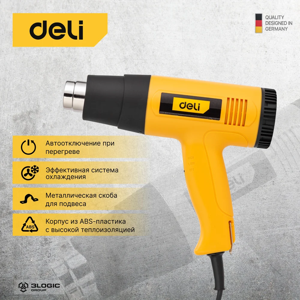 Купить Термопистолет/технический фен DELI DL391202 (2000Вт, рабочая температура 100...650 град.) 103017 по лучшей цене с доставкой - интернет магазин №1 в России