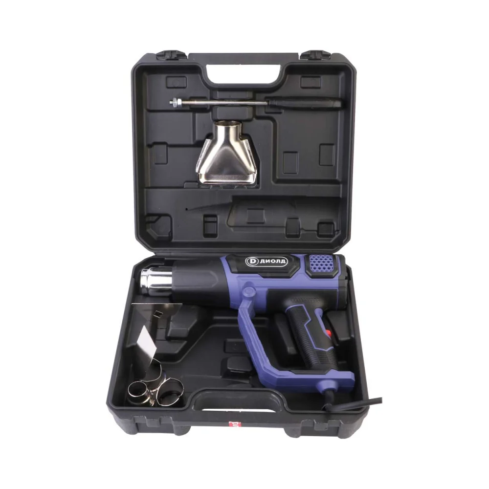 Комплектация Фен; Комплект насадок - 4 шт; Скребок с ручкой; Воздухогрейка; Руководство по эксплуатации; Адреса гарантийных мастерских; Упаковка; Ручка держатель в сборе; Кейс