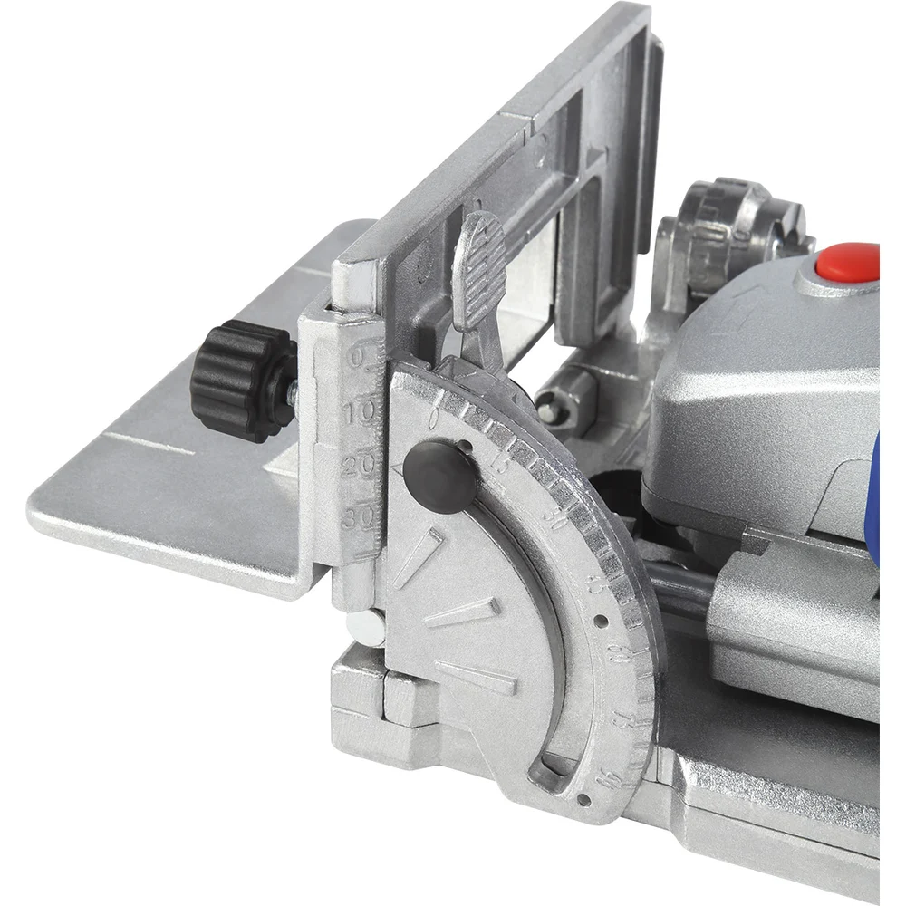 Комплектация Фрезер ламельный; Упор съемный; Мешок для сбора пыли; Ключ штифтовой; Ключ имбусовый шестигранный; Фреза дисковая, 100 мм × 22 мм × 3,92 мм × 6T*; Деревянная ламель 0 (47×15×4мм); Деревянная ламель 10 (53×19×4мм); Деревянная ламель 20 (56×23×4мм); Щётка угольная; Руководство по эксплуатации; Упаковка