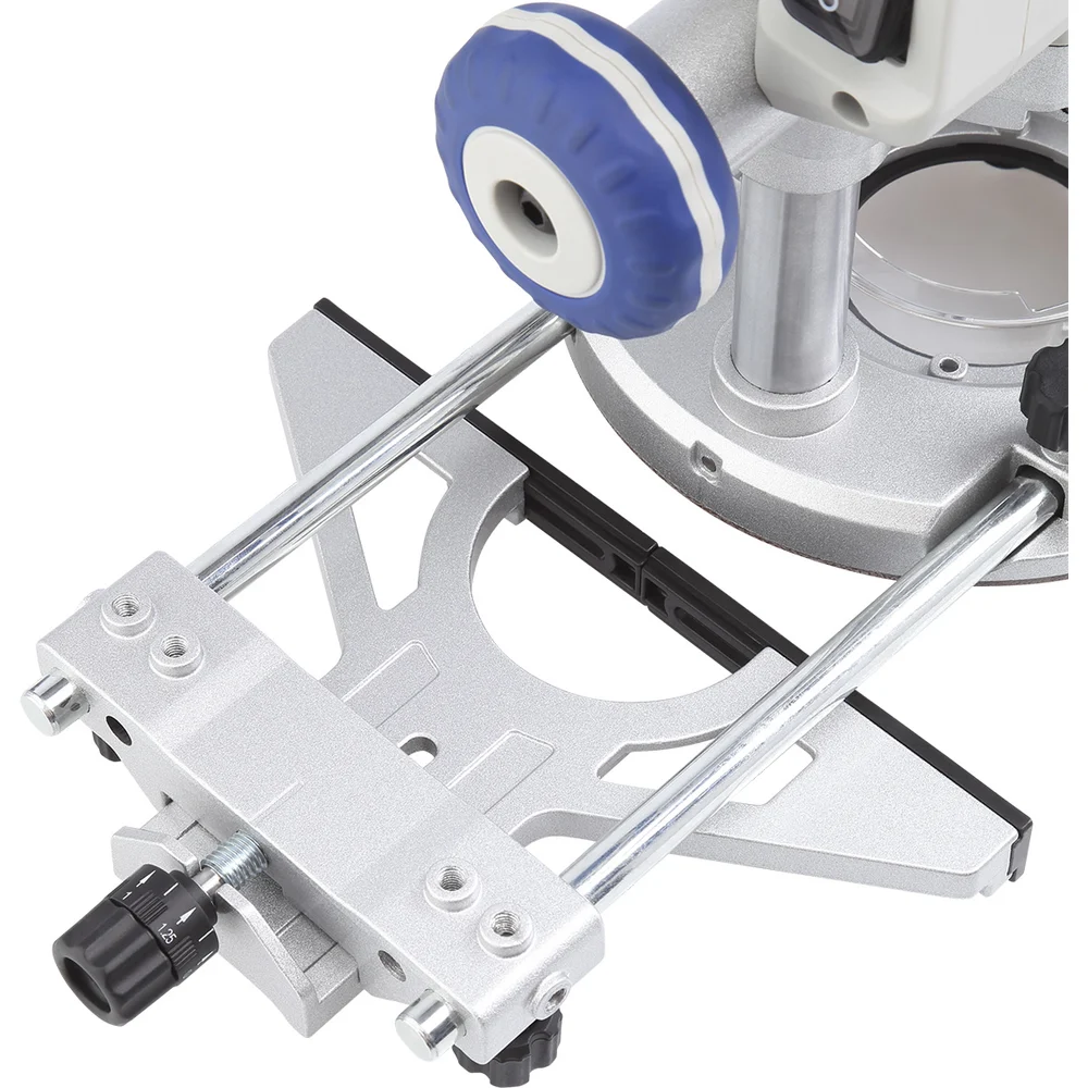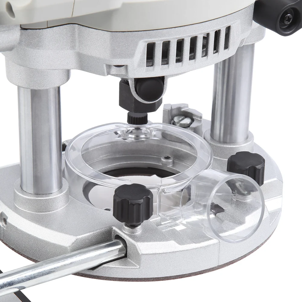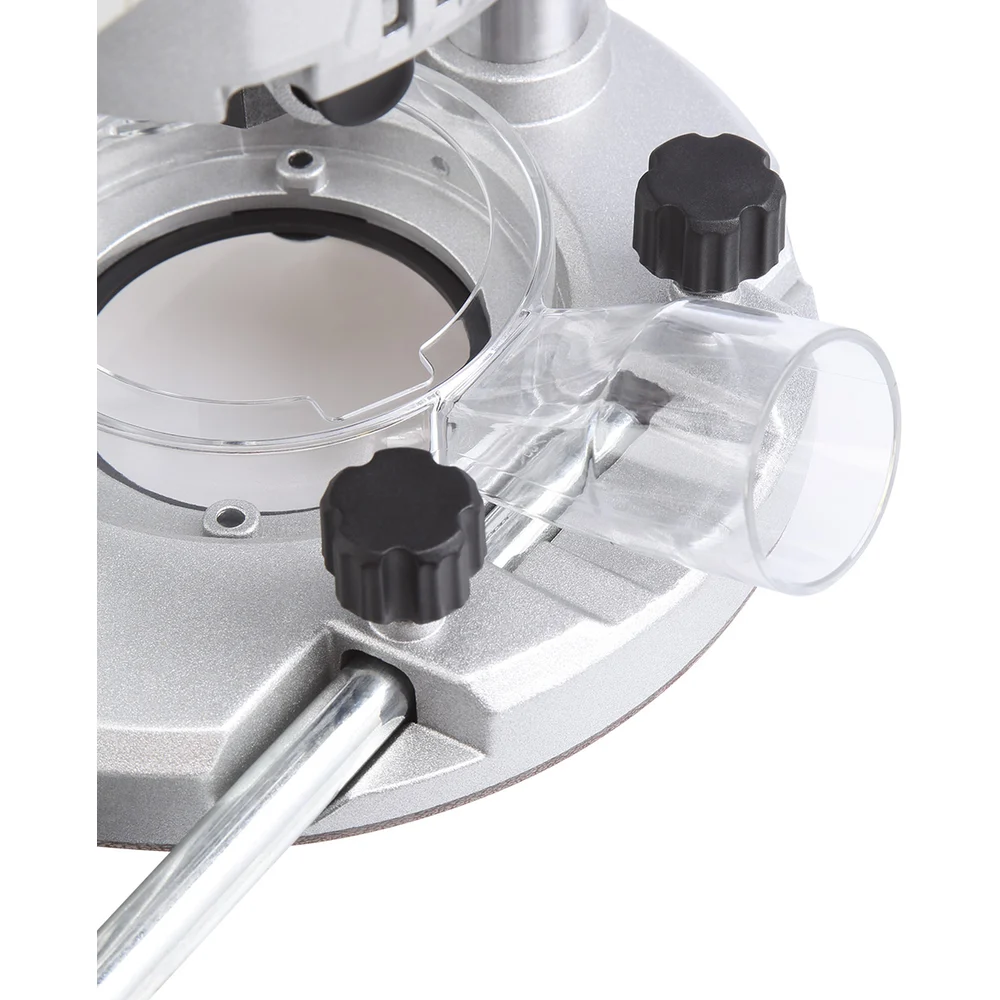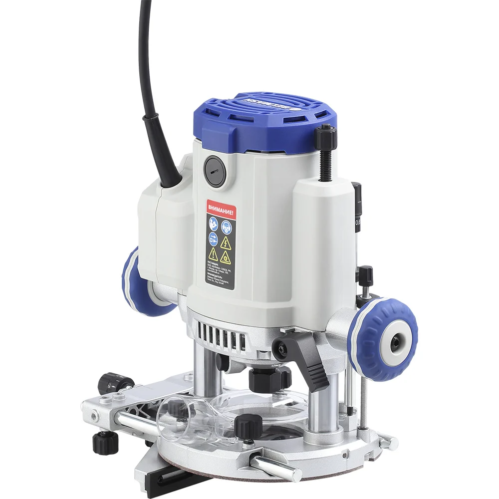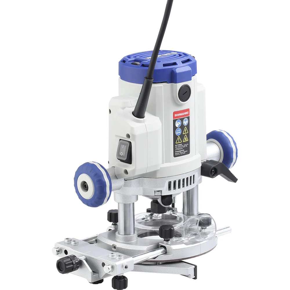 Комплектация Фрезер - 1; Пластина направляющая в сборе - 1; Втулка копировальная - 1; Ключ гаечный 24×10 мм - 1; Адаптер для отведения стружки* - 1; Ручка регулировки вылета шпинделя - 1; Щетка угольная - 2; Винт М6×13 - 4; Цанга 12 мм* - 1; Переходник цанги с 12мм на 8мм - 1; Руководство по эксплуатации - 1; Упаковка - 1