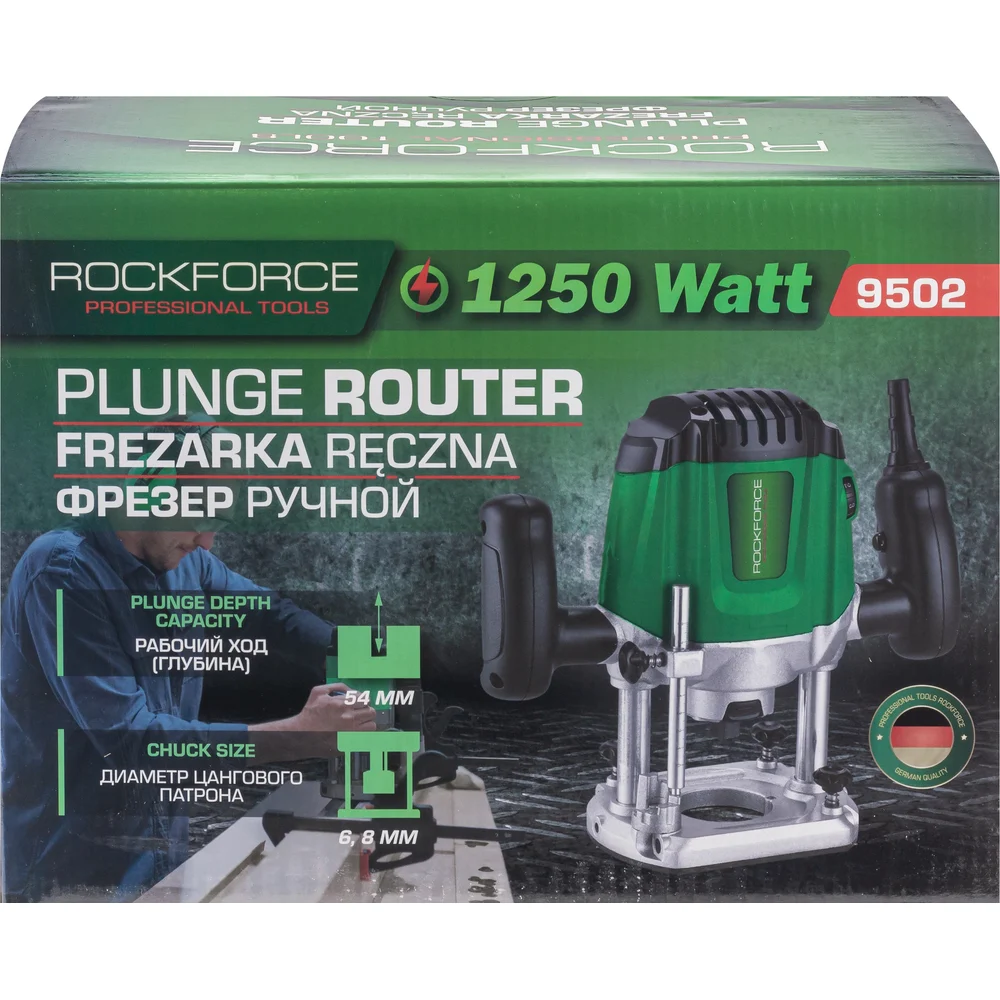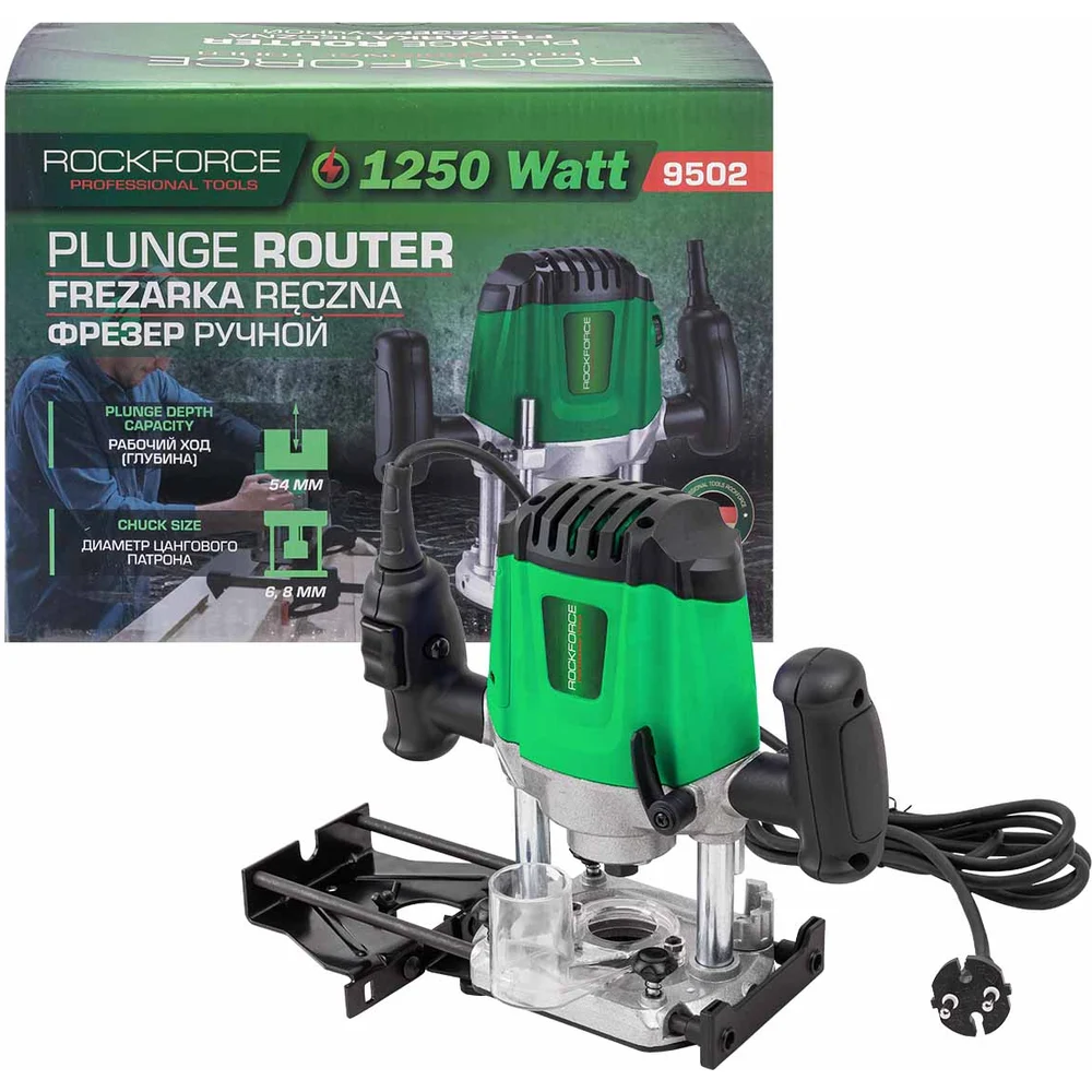 Купить Фрезер ручной Rockforce 1250Вт, 12000-30000 об/мин, ход фрезы 54мм, цанги 6,8мм RF-9502(60753) по лучшей цене с доставкой - интернет магазин №1 в России