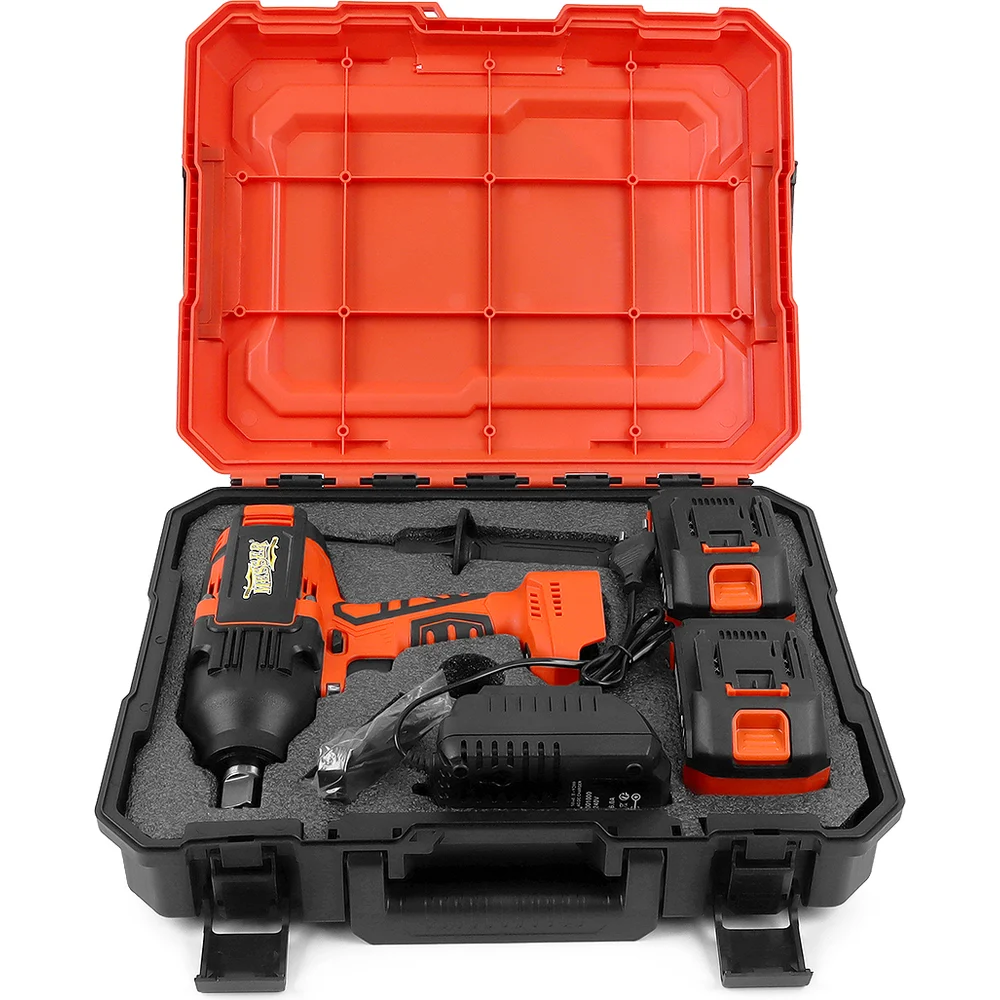 Комплектация Ударный гайковерт; Съемная рукоятка 1 шт; Аккумулятор 6Ач 2 шт; Зарядное устройство 1 шт; Пластиковый кейс
