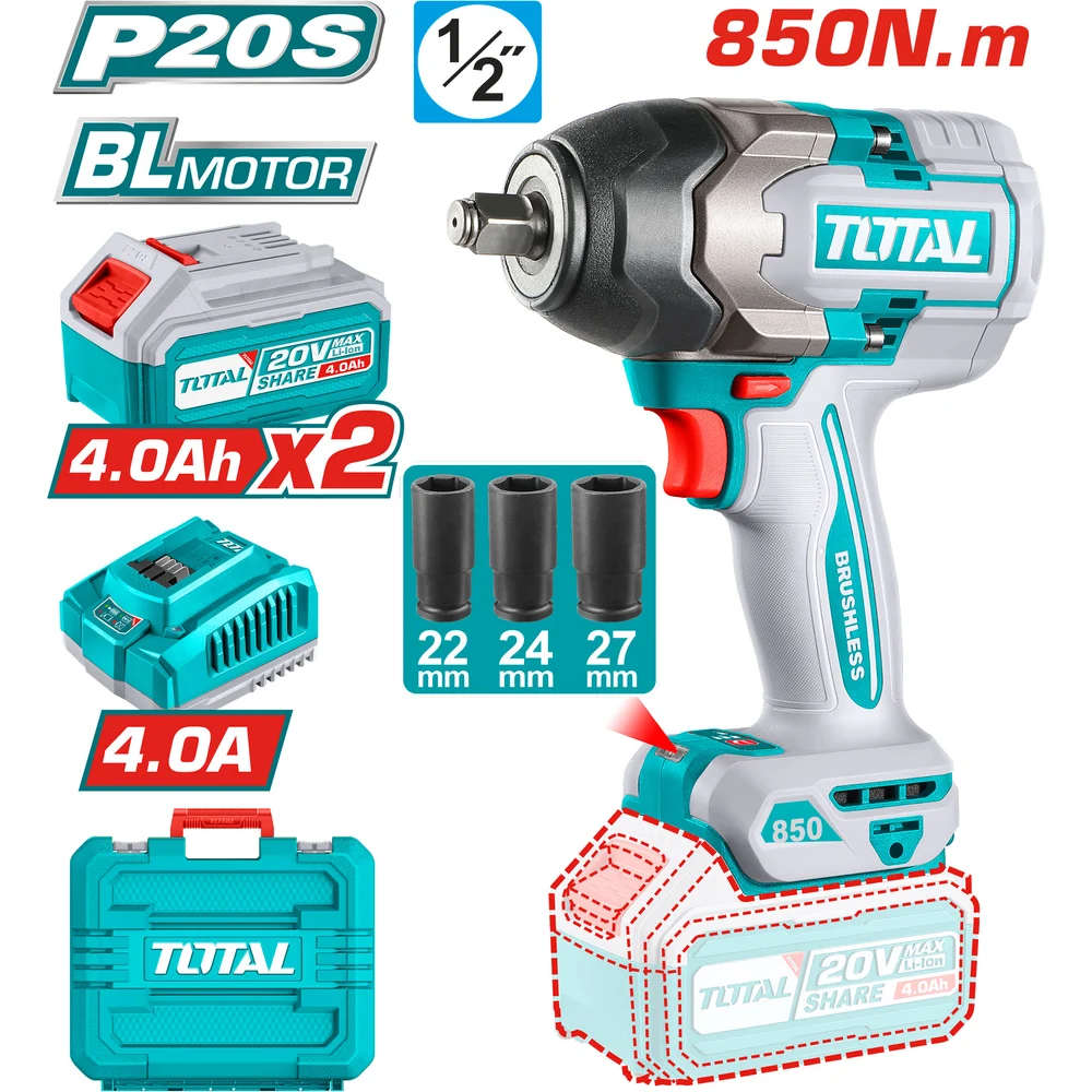 Купить Аккумуляторный ударный гайковерт TOTAL 1/2” 850Нм TIWLI2085 по лучшей цене с доставкой - интернет магазин №1 в России