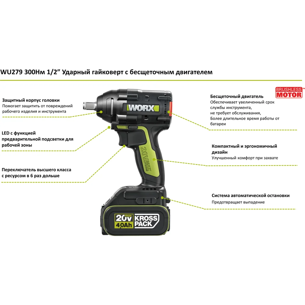 Купить Аккумуляторный ударный гайковерт WORX Professional WU279.1 по лучшей цене с доставкой - интернет магазин №1 в России