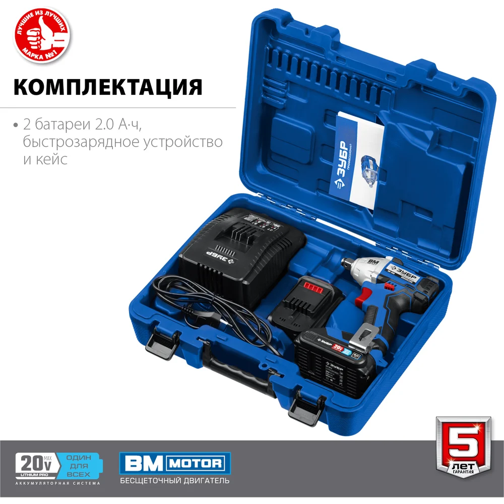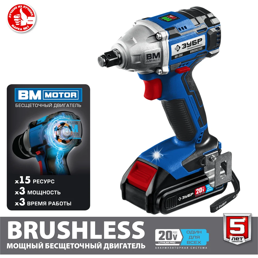 Купить Бесщеточный гайковерт ЗУБР Профессионал 20 В, 2 АКБ, 2 Ач, в кейсе GB-250-22 по лучшей цене с доставкой - интернет магазин №1 в России