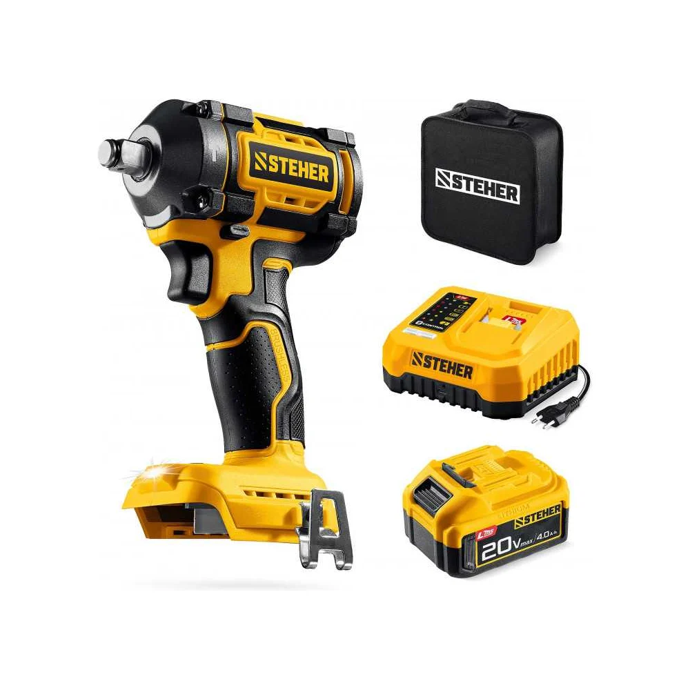 Бесщеточный ударный гайковерт STEHER 20 В, 500 Н·м, 1 АКБ LMS (4 А·ч), сумка CWB-500-41
