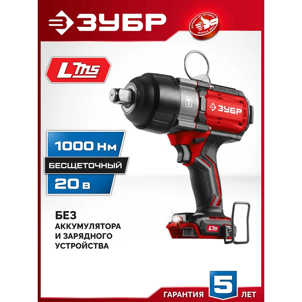 Купить Бесщеточный ударный гайковерт ЗУБР 20 В, 1000 Н·м, без АКБ (LMS) ГБУ-1000 по лучшей цене с доставкой - интернет магазин №1 в России
