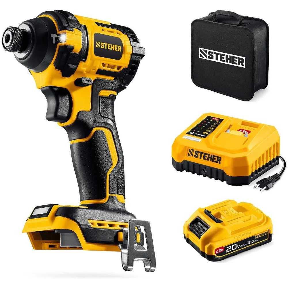Купить Бесщеточный ударный винтоверт STEHER 20 В, 180 Н·м, 1 АКБ LMS (2 А·ч), сумка CSB-180-21 по лучшей цене с доставкой - интернет магазин №1 в России