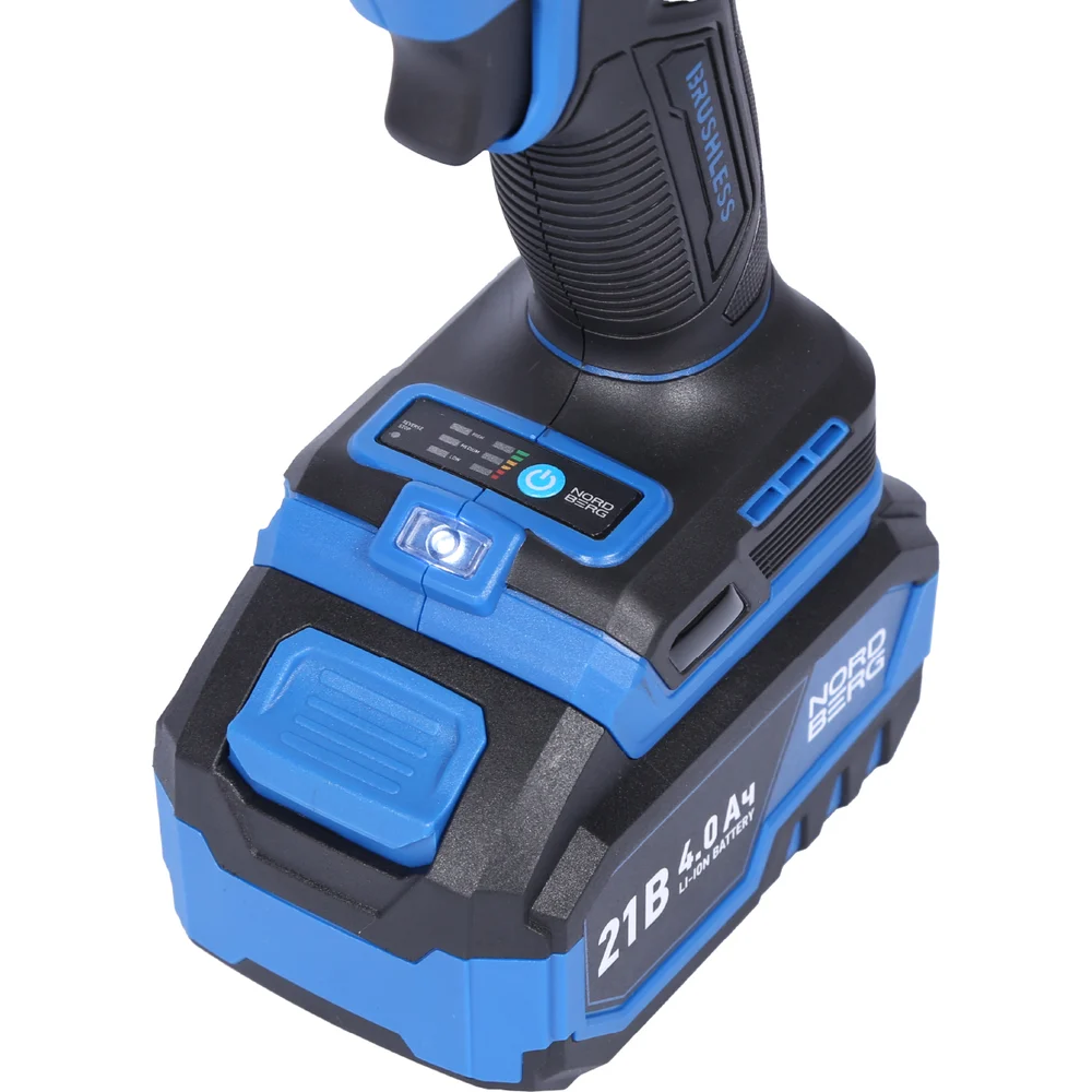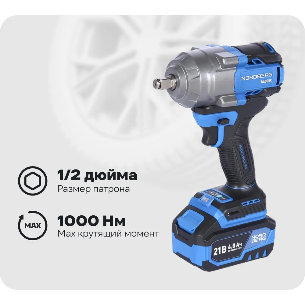 Гайковерт аккумуляторный NORDBERG 1/2, 21В, 1000 Нм с двумя 4A аккум. и зар. уст-вом, в кейсе NE805K