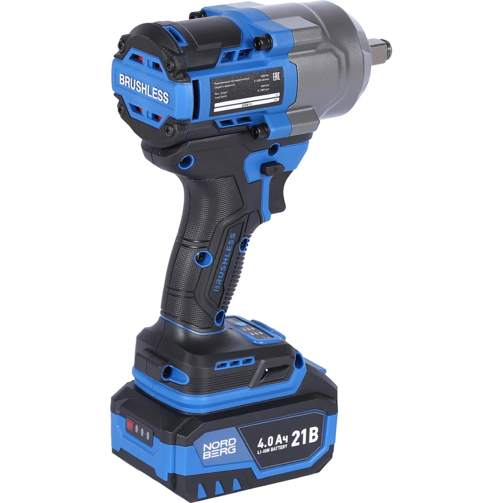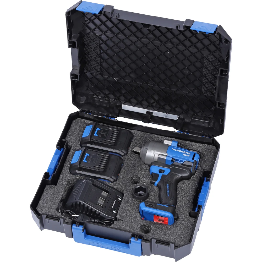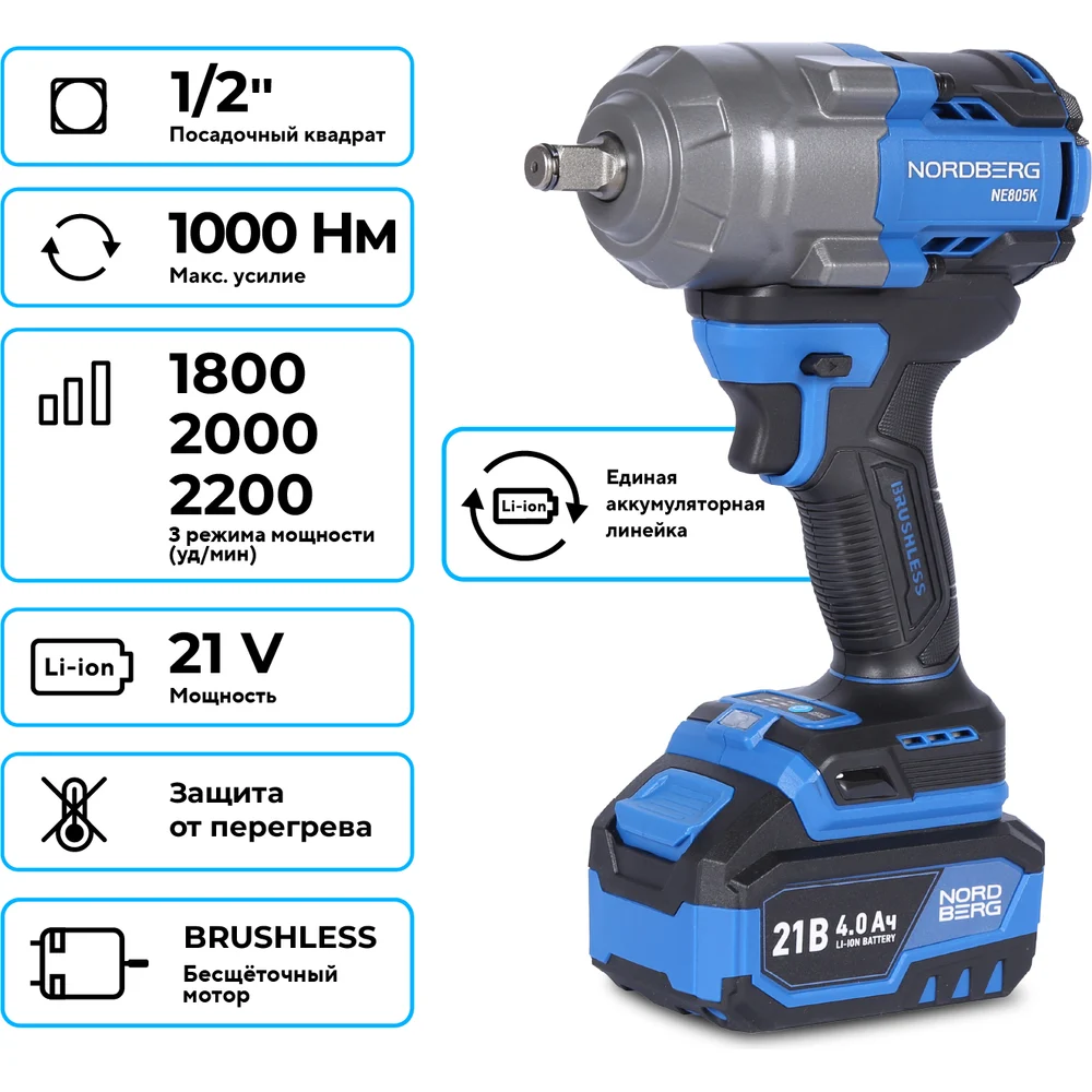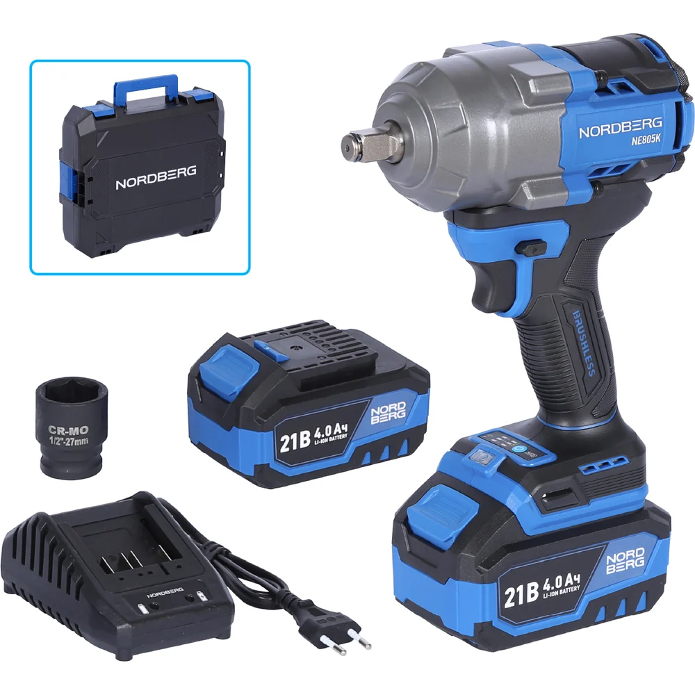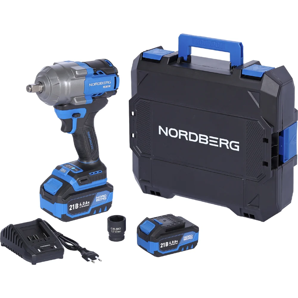 Купить Гайковерт аккумуляторный NORDBERG 1/2, 21В, 1000 Нм с двумя 4A аккум. и зар. уст-вом, в кейсе NE805K по лучшей цене с доставкой - интернет магазин №1 в России